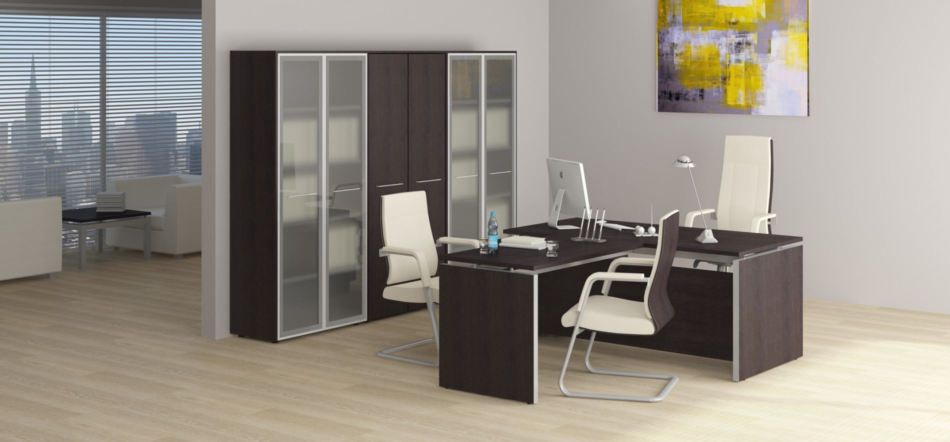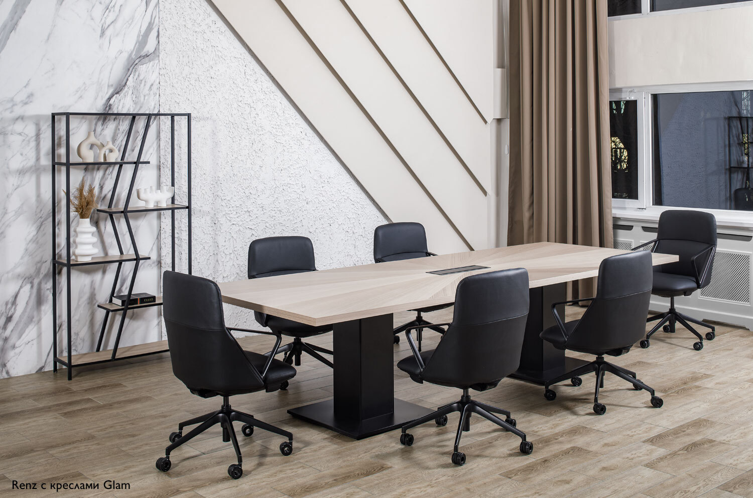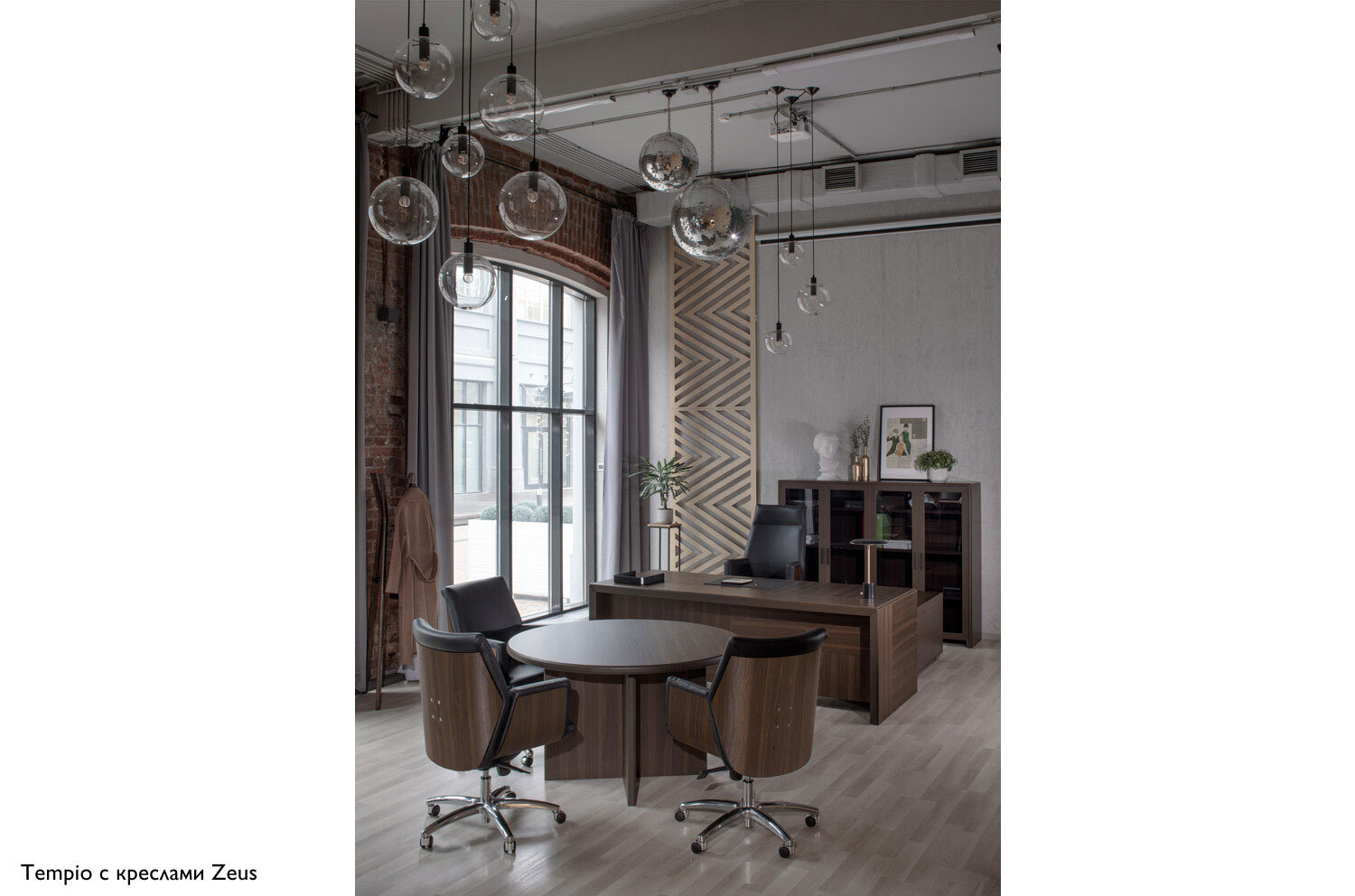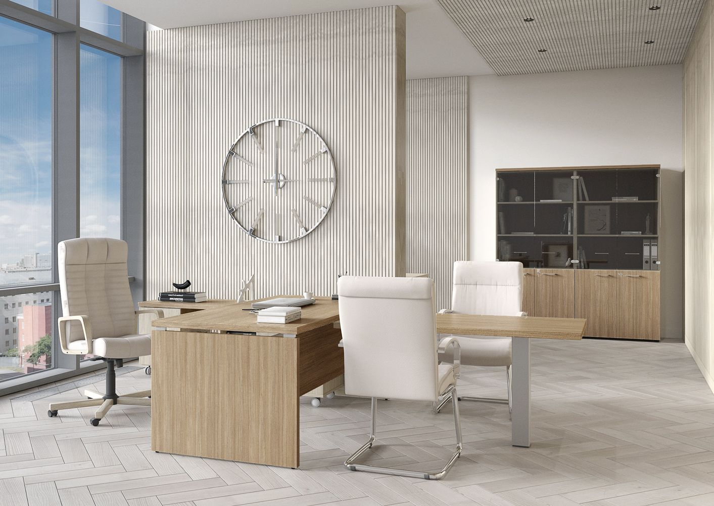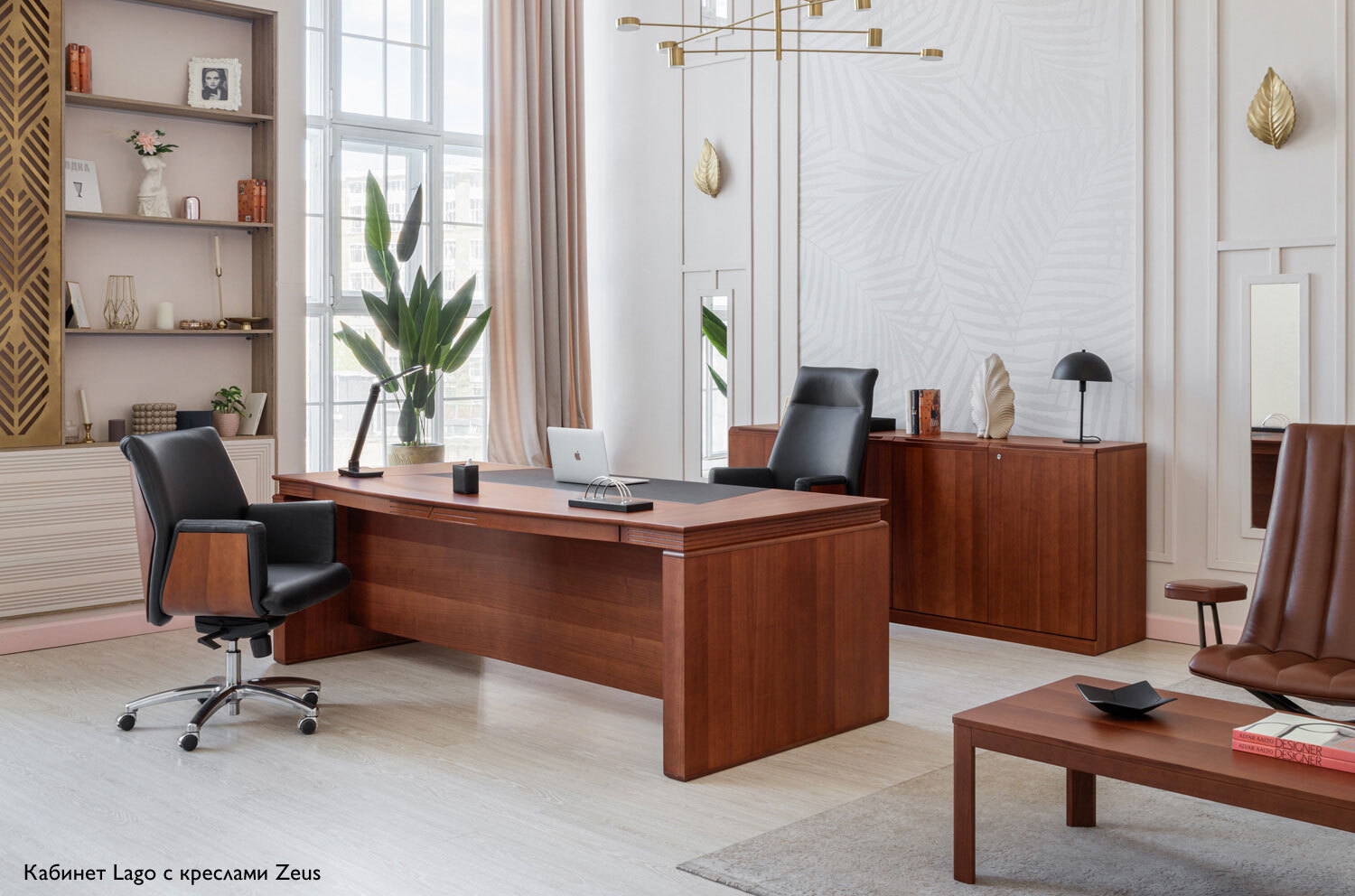 Конструкция элементов доведена до скульптурной четкости. Дизайн функционально обоснован и лаконичен. Прямые линии, массивные формы и интересные детали привнесут эстетику и значительность в интерьер вашего офиса.
