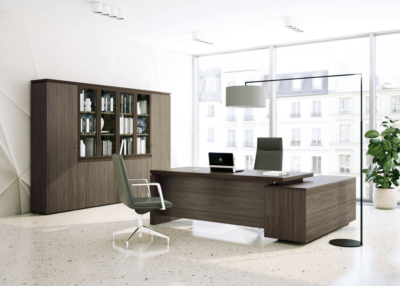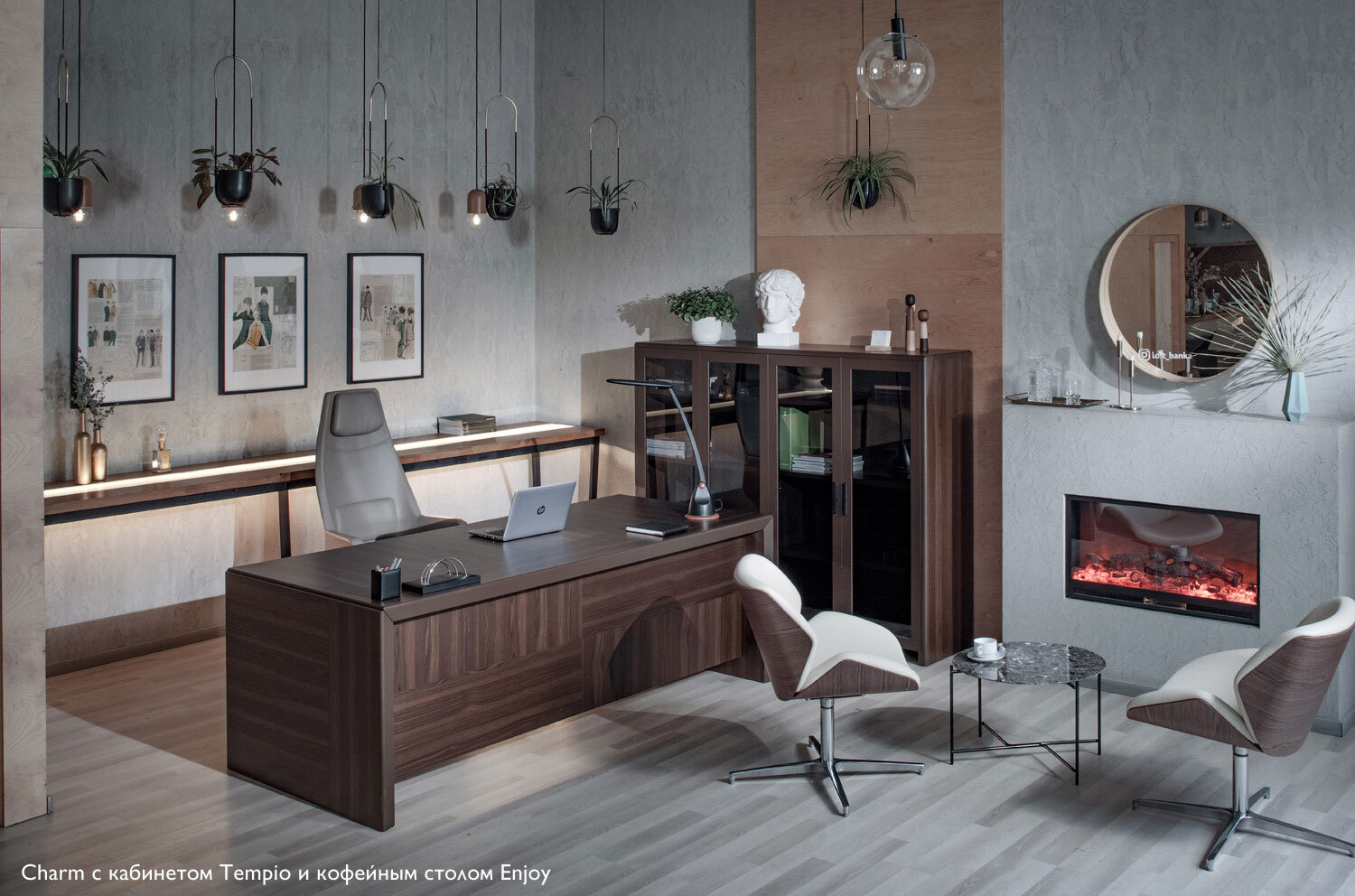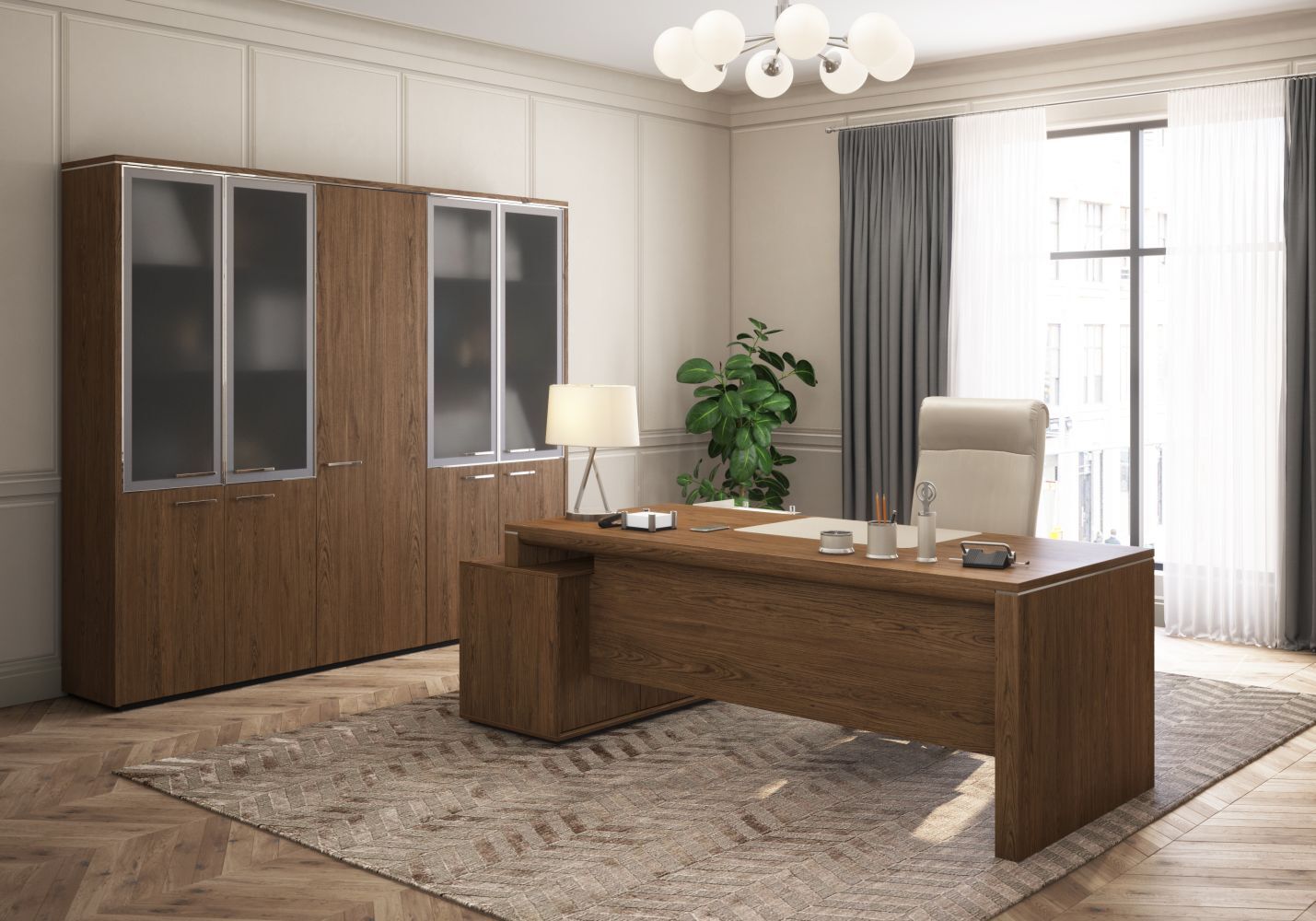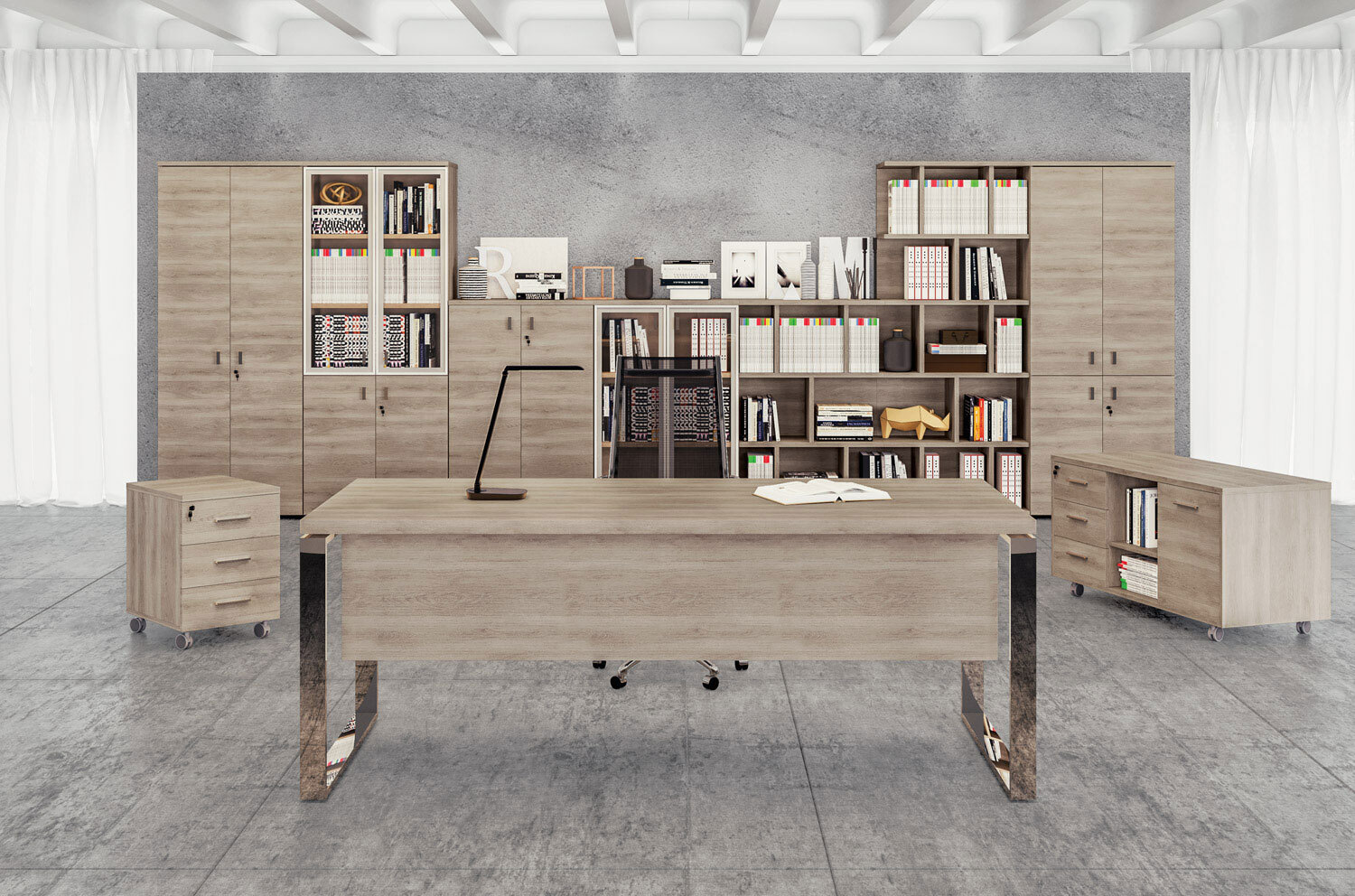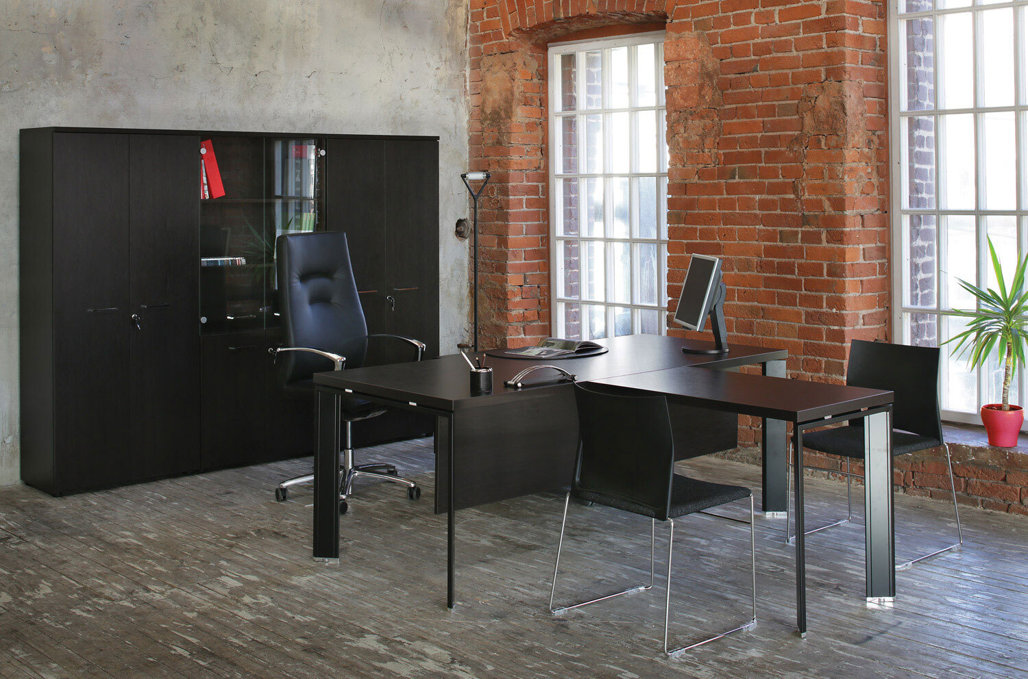 Конструкция элементов доведена до скульптурной четкости. Дизайн функционально обоснован и лаконичен. Прямые линии, массивные формы и интересные детали привнесут эстетику и значительность в интерьер вашего офиса.