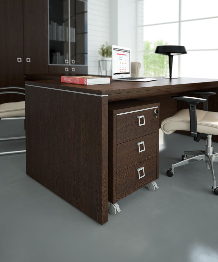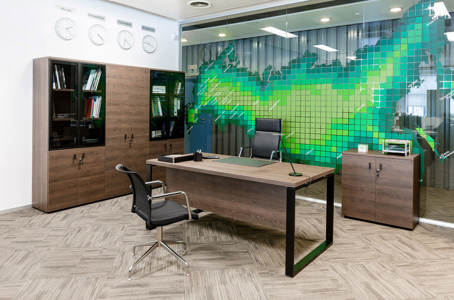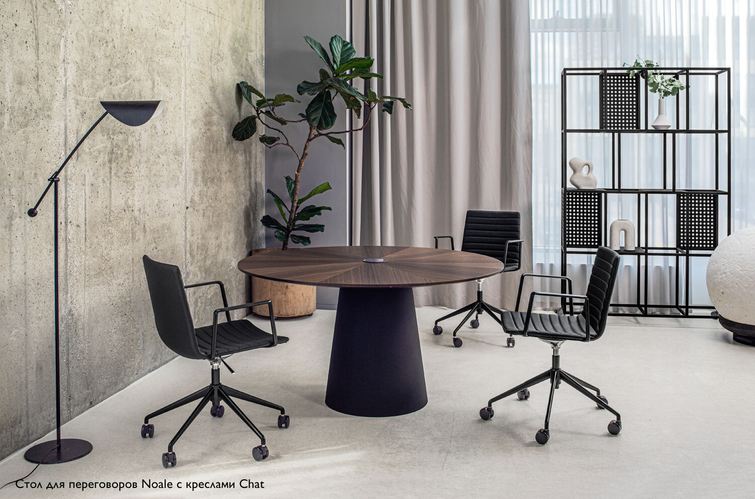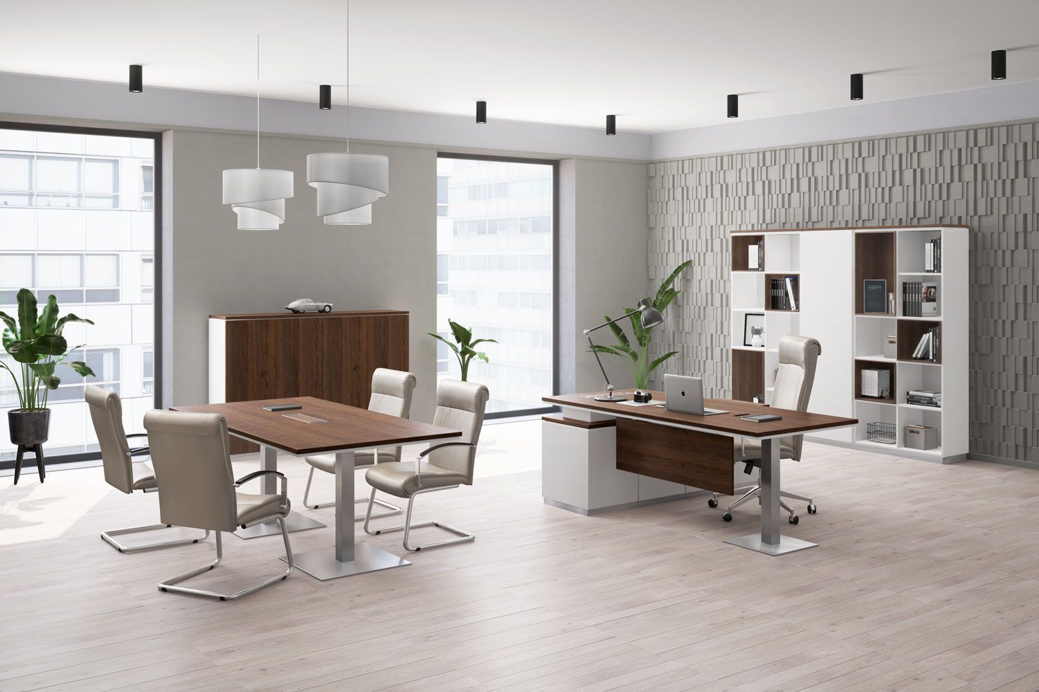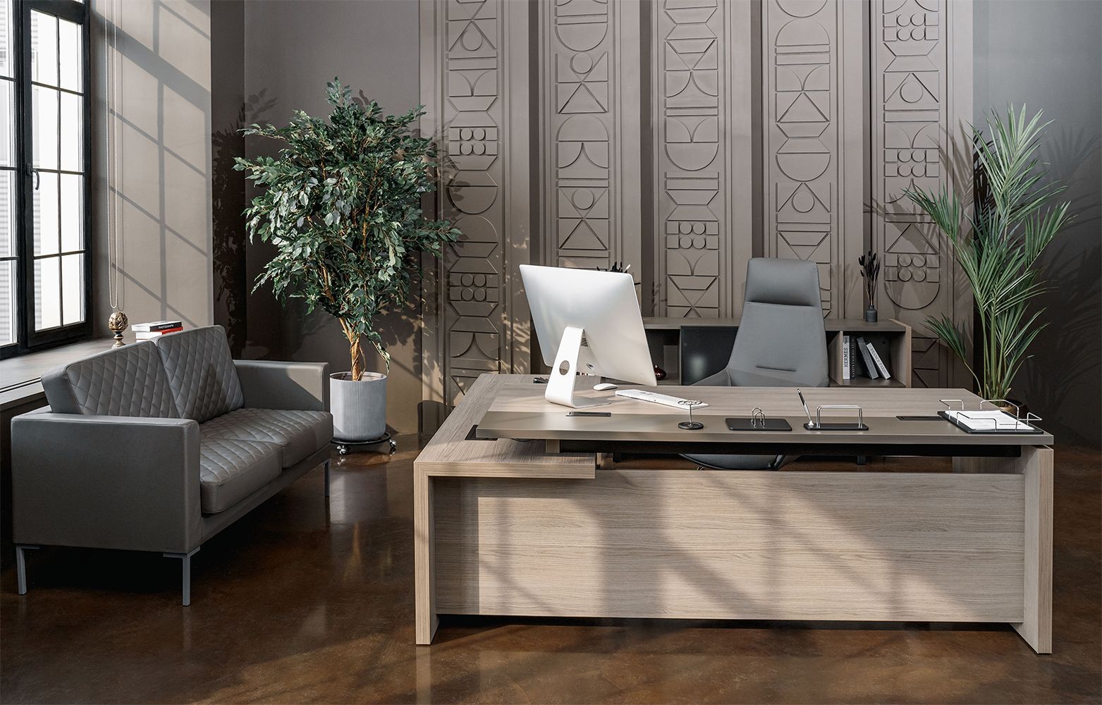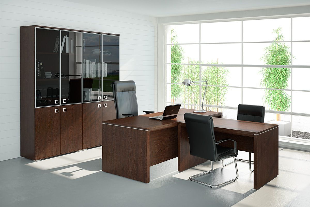 Конструкция элементов доведена до скульптурной четкости. Дизайн функционально обоснован и лаконичен. Прямые линии, массивные формы и интересные детали привнесут эстетику и значительность в интерьер вашего офиса.