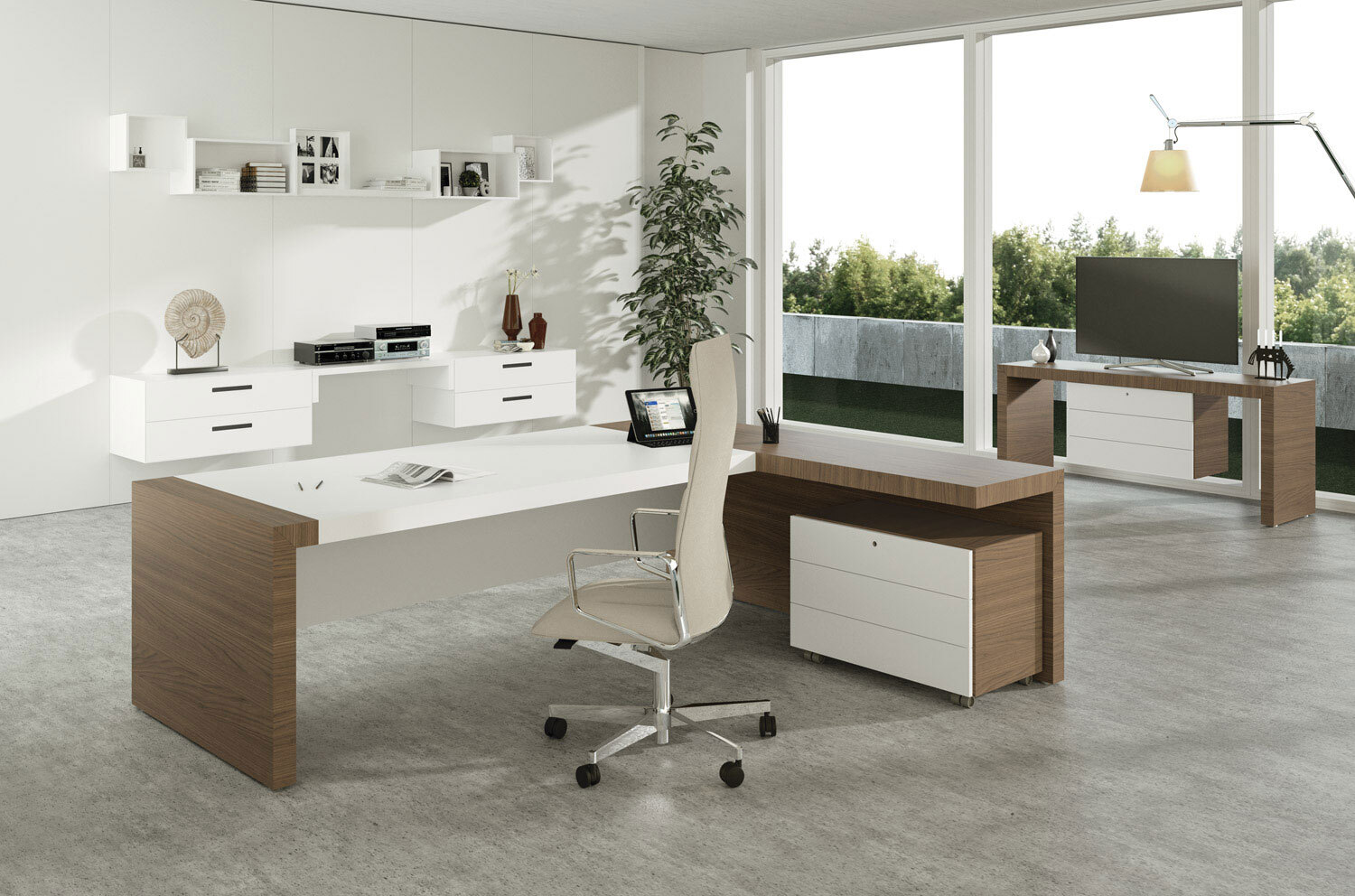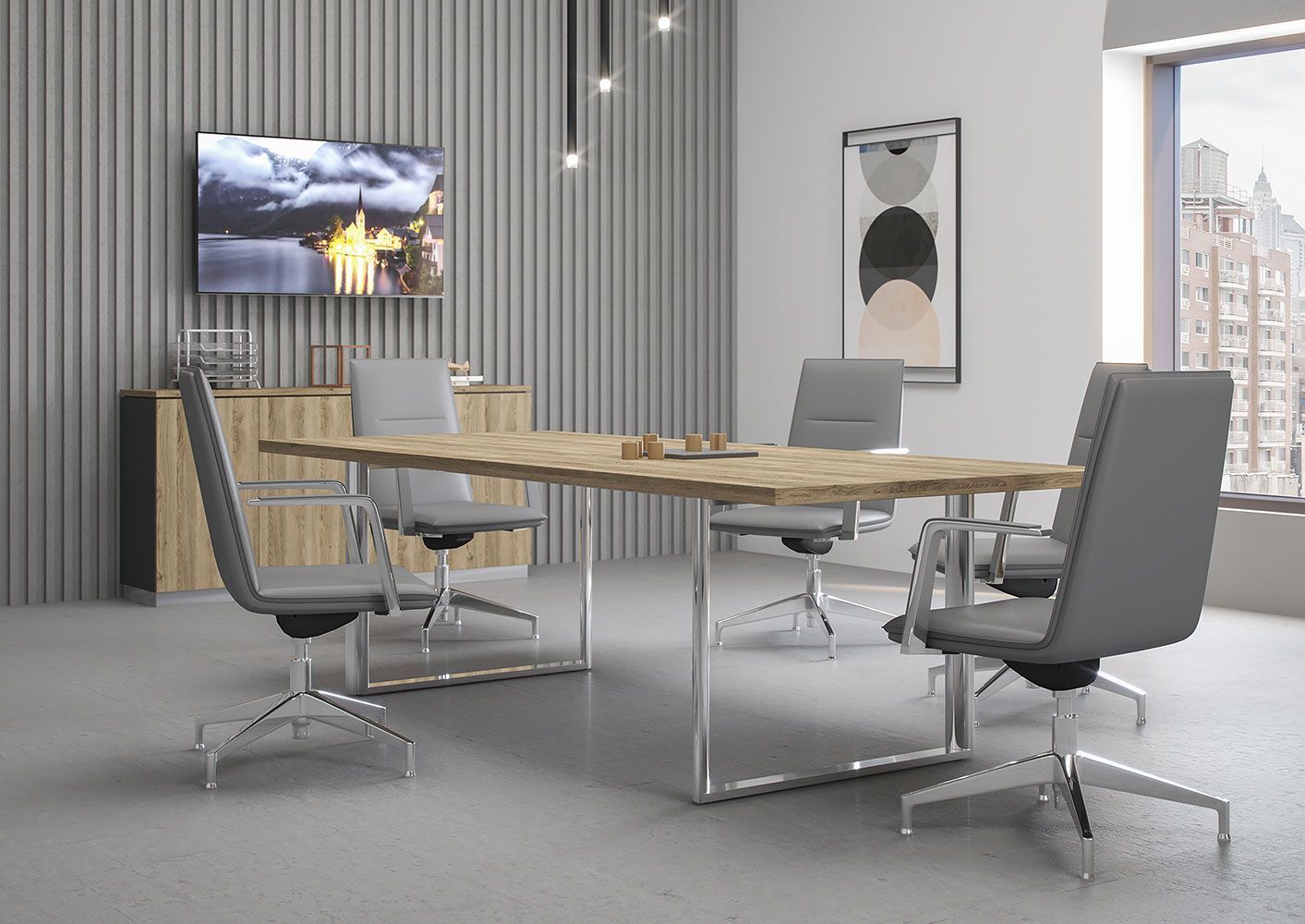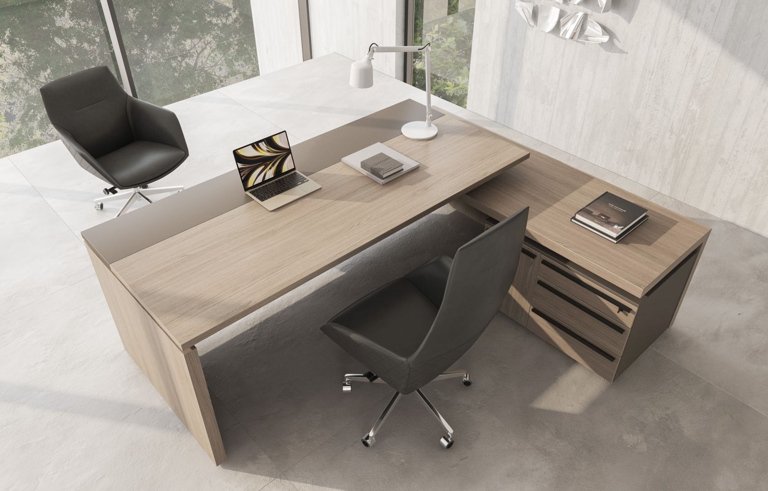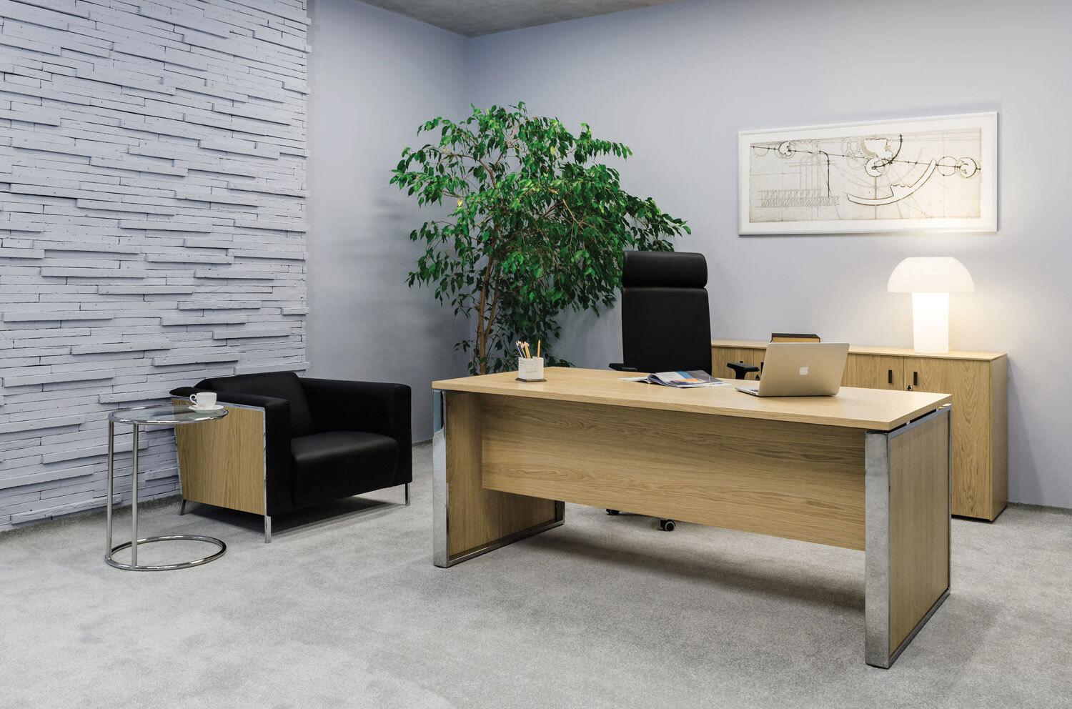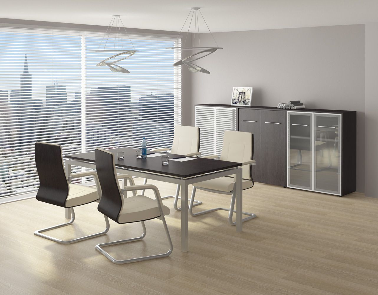 Конструкция элементов доведена до скульптурной четкости. Дизайн функционально обоснован и лаконичен. Прямые линии, массивные формы и интересные детали привнесут эстетику и значительность в интерьер вашего офиса.