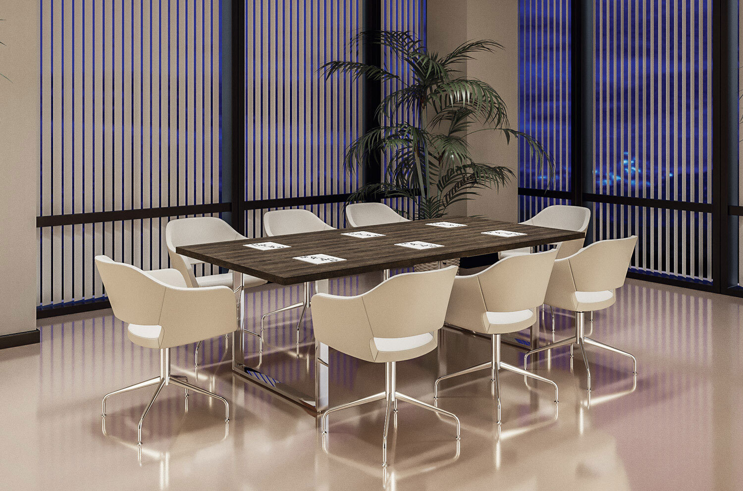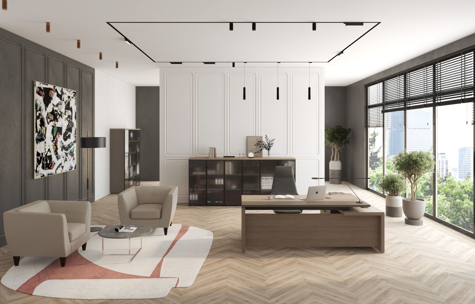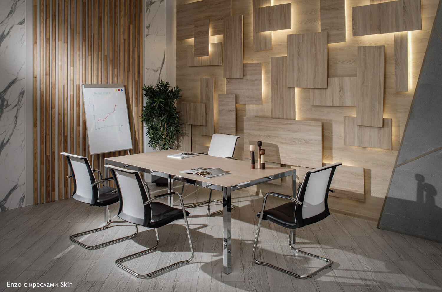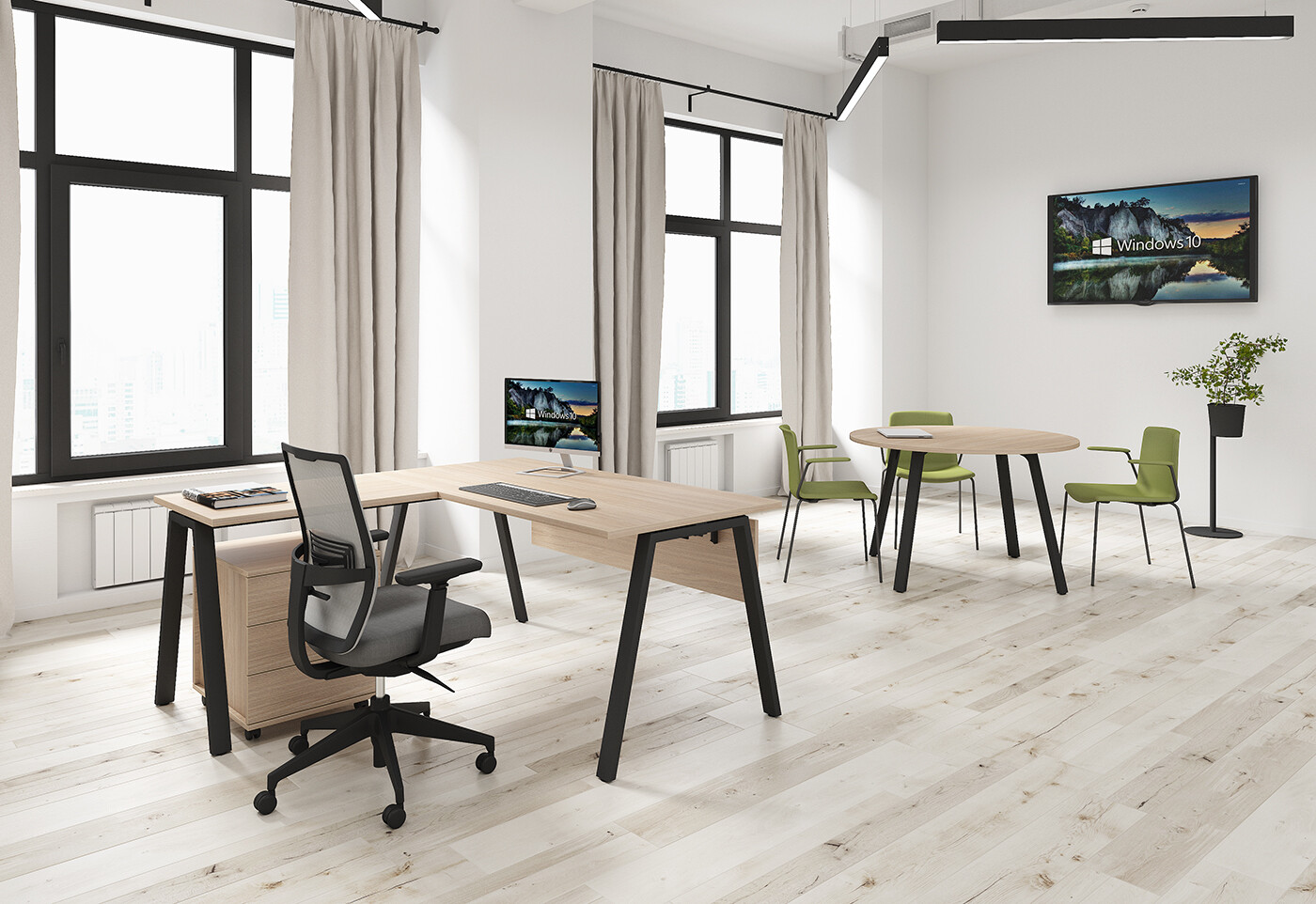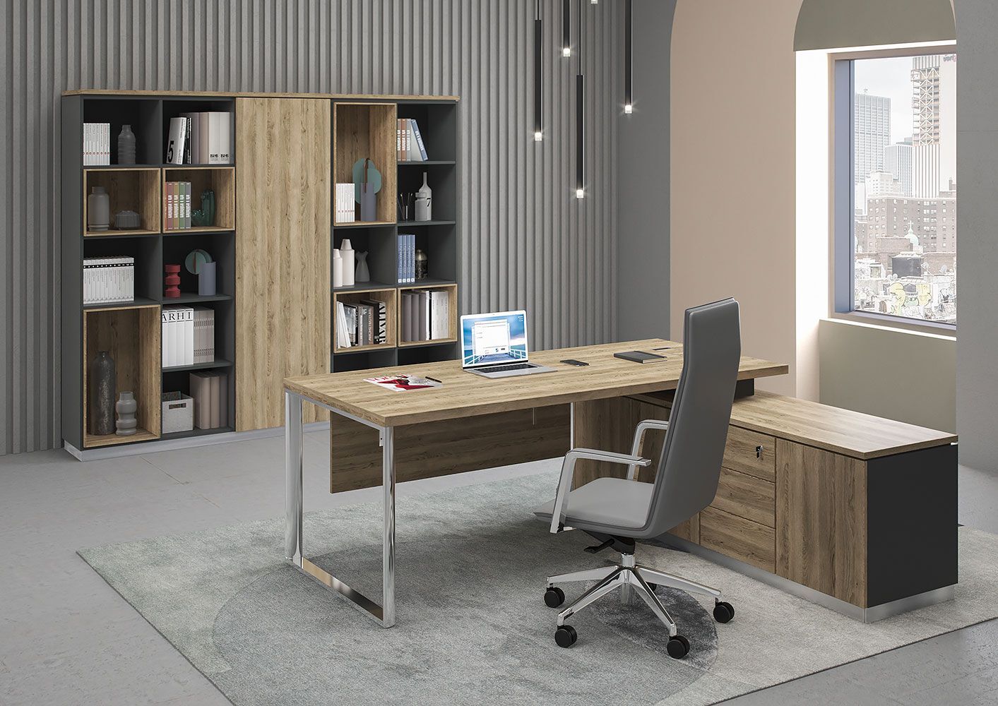 Конструкция элементов доведена до скульптурной четкости. Дизайн функционально обоснован и лаконичен. Прямые линии, массивные формы и интересные детали привнесут эстетику и значительность в интерьер вашего офиса.