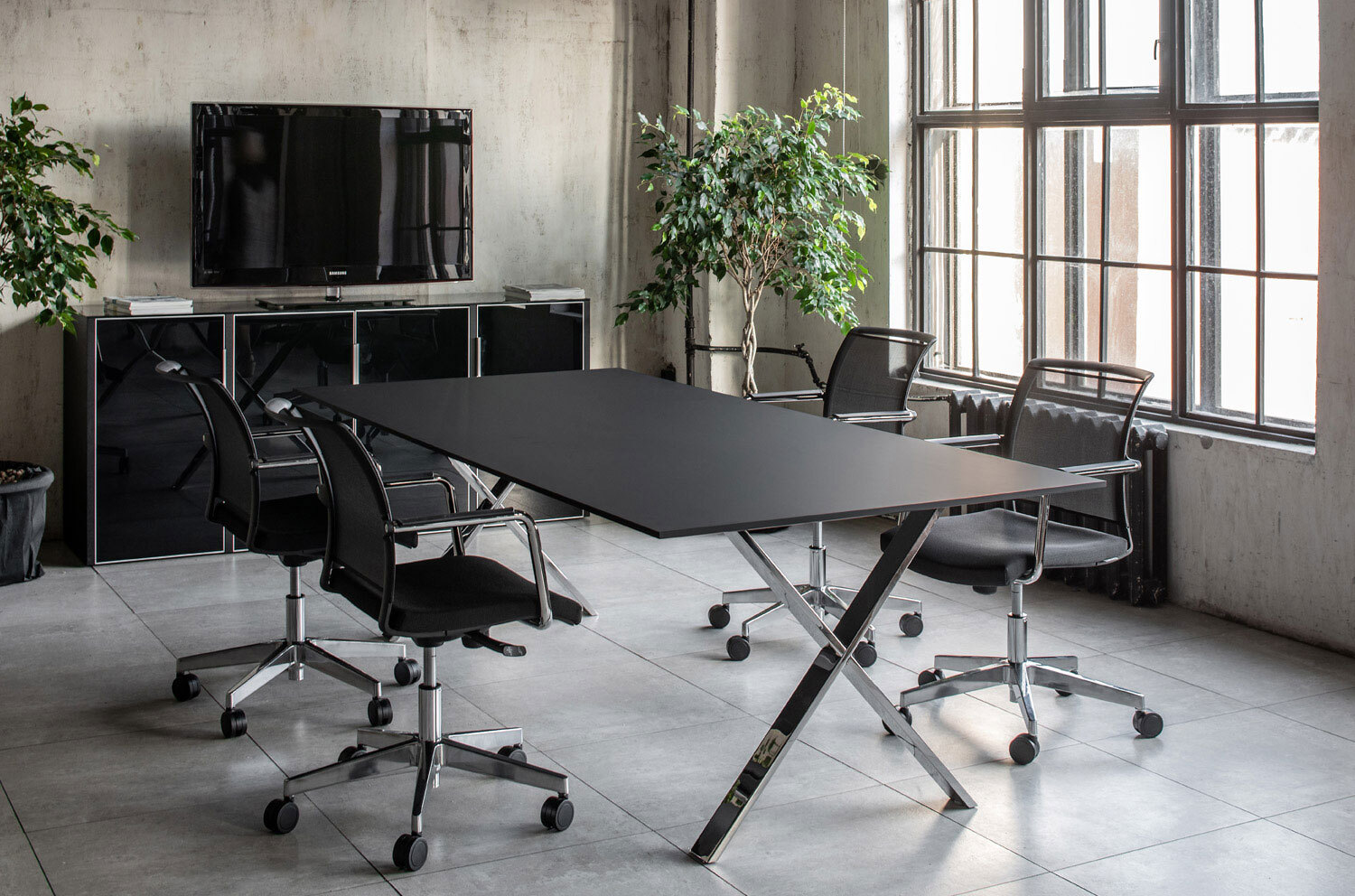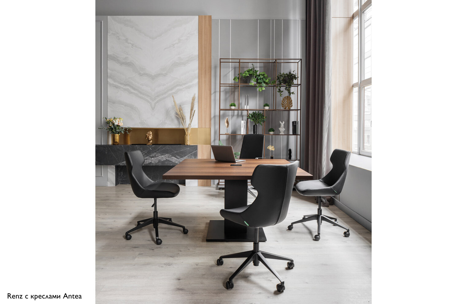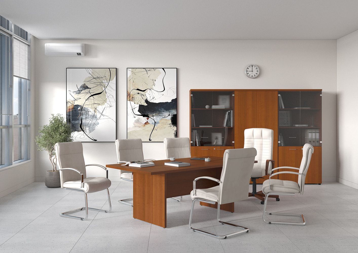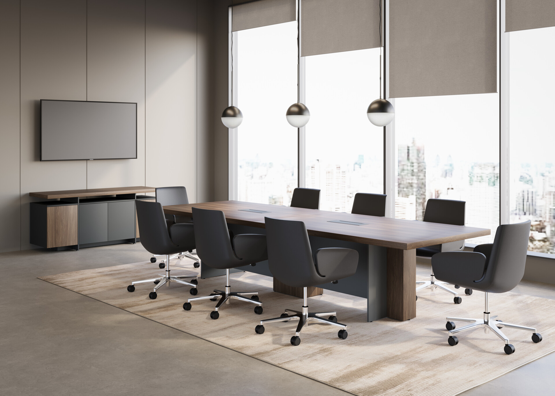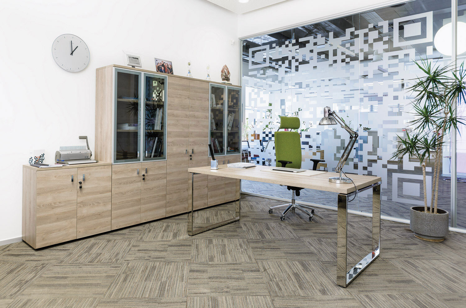 Конструкция элементов доведена до скульптурной четкости. Дизайн функционально обоснован и лаконичен. Прямые линии, массивные формы и интересные детали привнесут эстетику и значительность в интерьер вашего офиса.