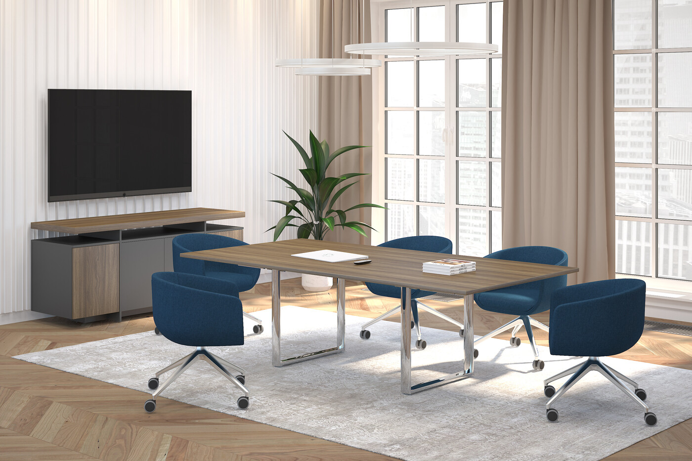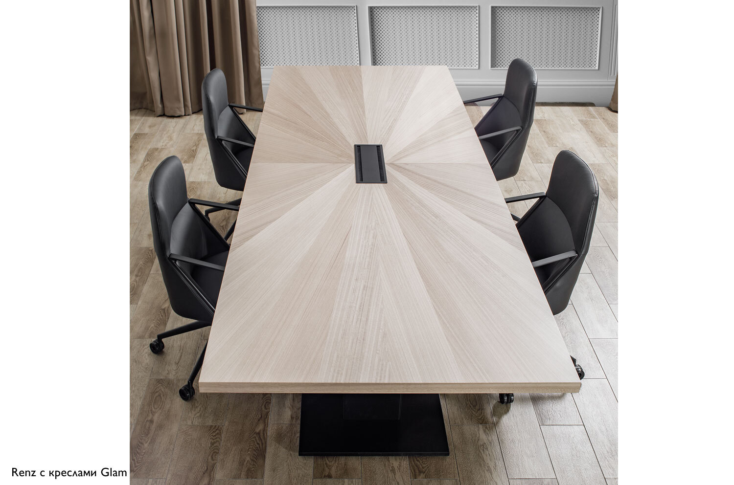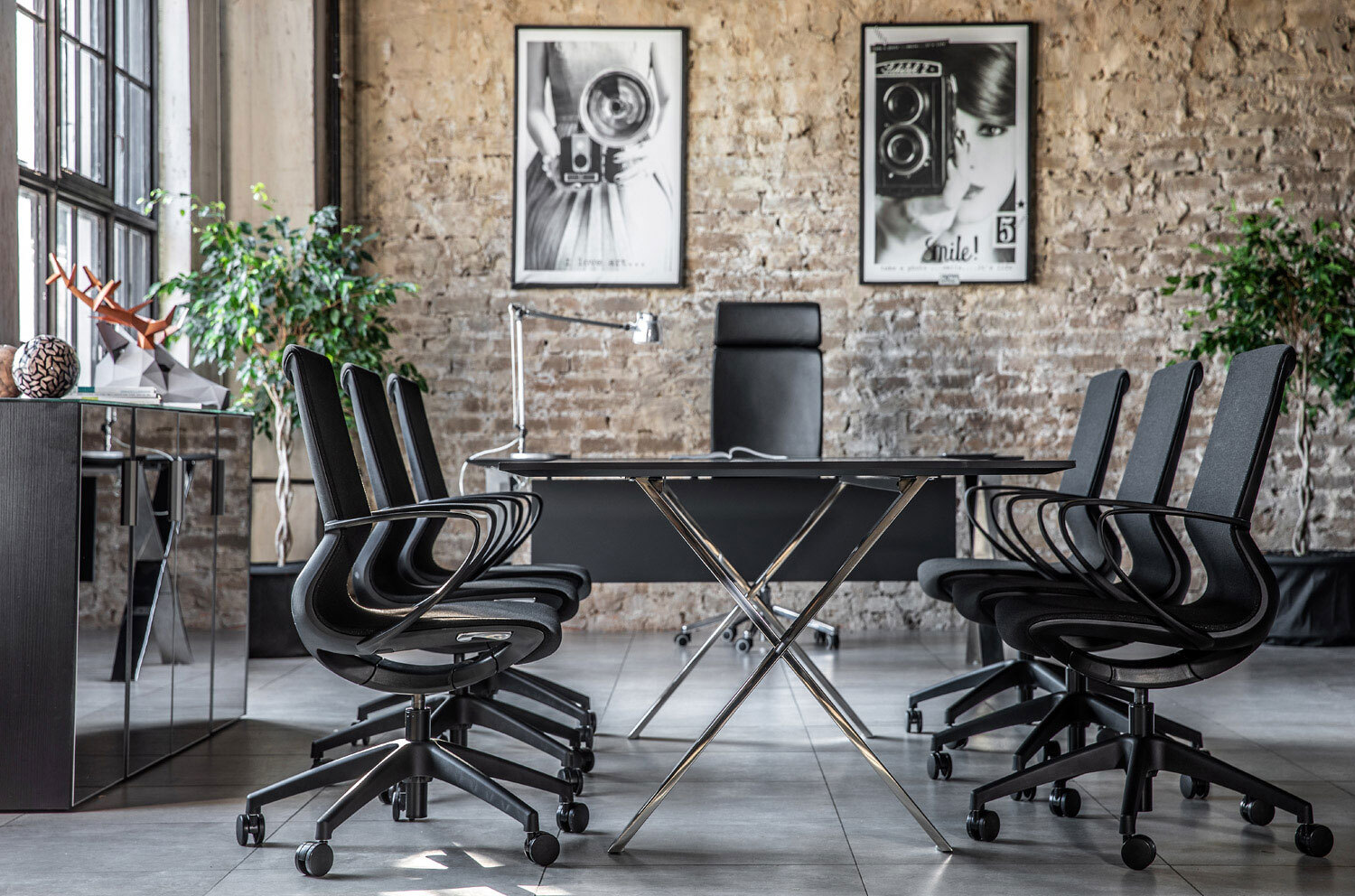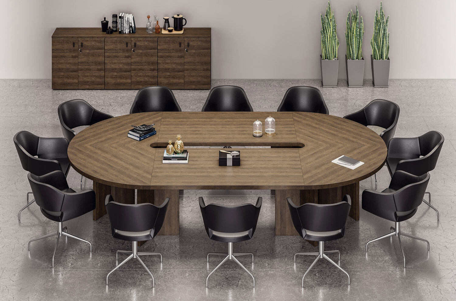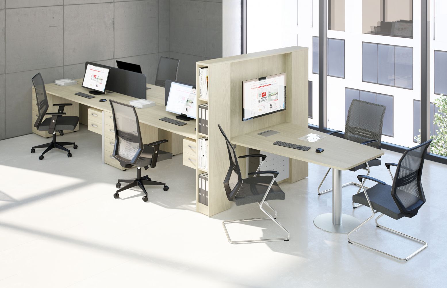 Конструкция элементов доведена до скульптурной четкости. Дизайн функционально обоснован и лаконичен. Прямые линии, массивные формы и интересные детали привнесут эстетику и значительность в интерьер вашего офиса.