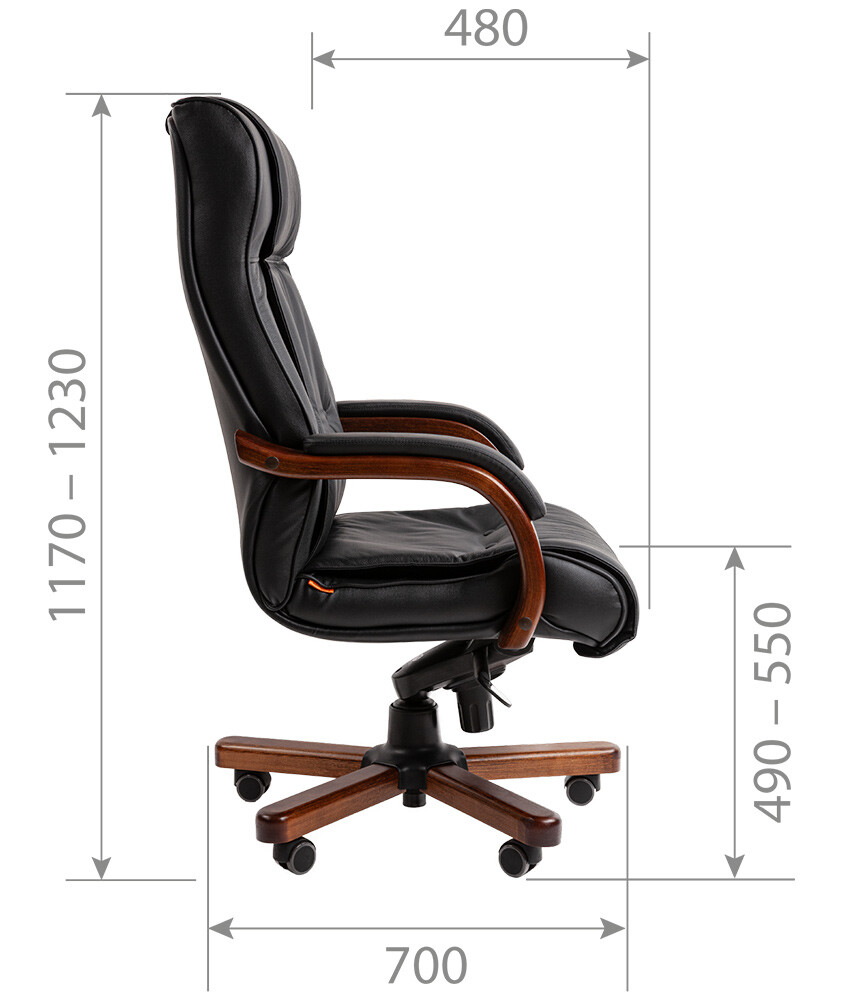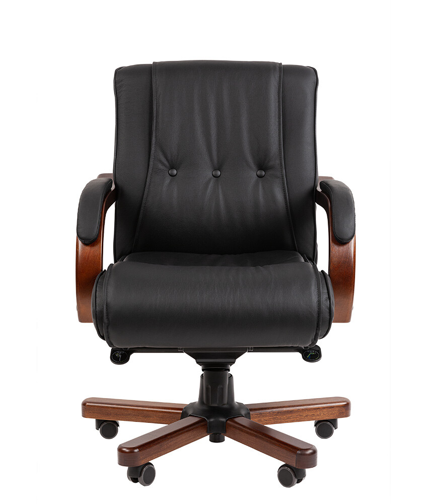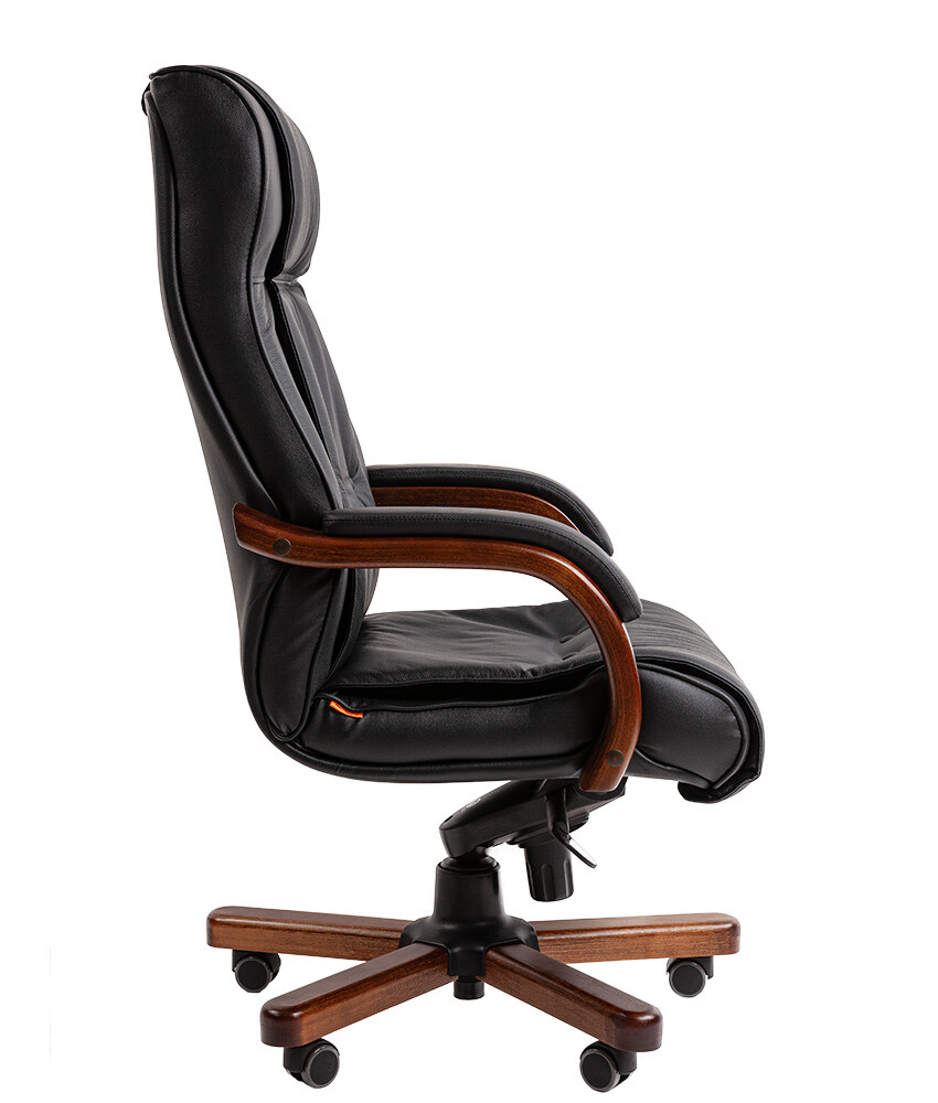 Кресло руководителя, предназначенное для Больших Людей. Выдерживает до 180 кг. Максимальный комфорт и престижное сочетание лакированного дерева и натуральной кожи. Деревянные с подлокотники мягкими накладками, обитыми натуральной кожей. Механизм качания Повышенной комфортности с возможностью фиксации кресла в нескольких положениях. Регулировка кресла по высоте.