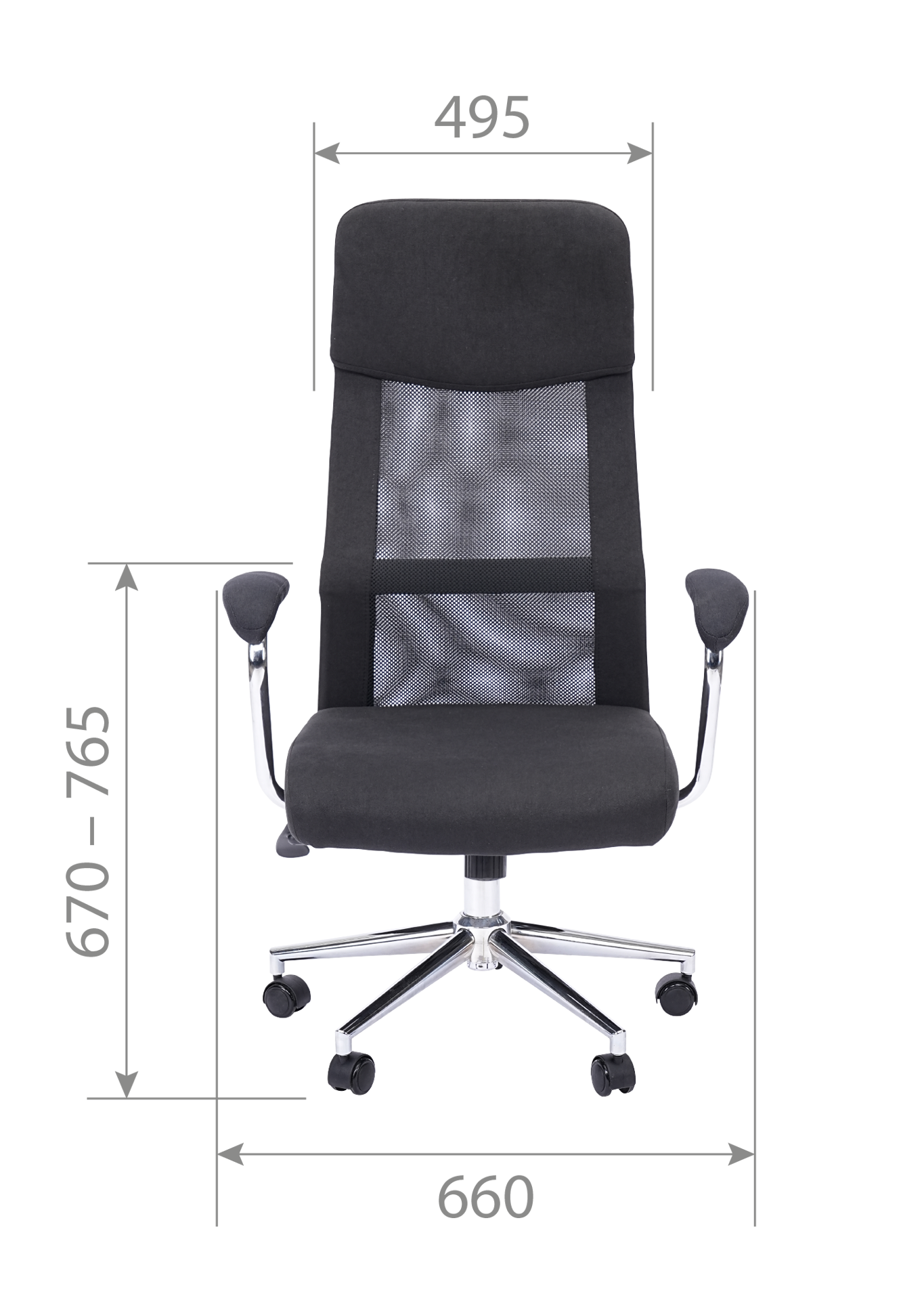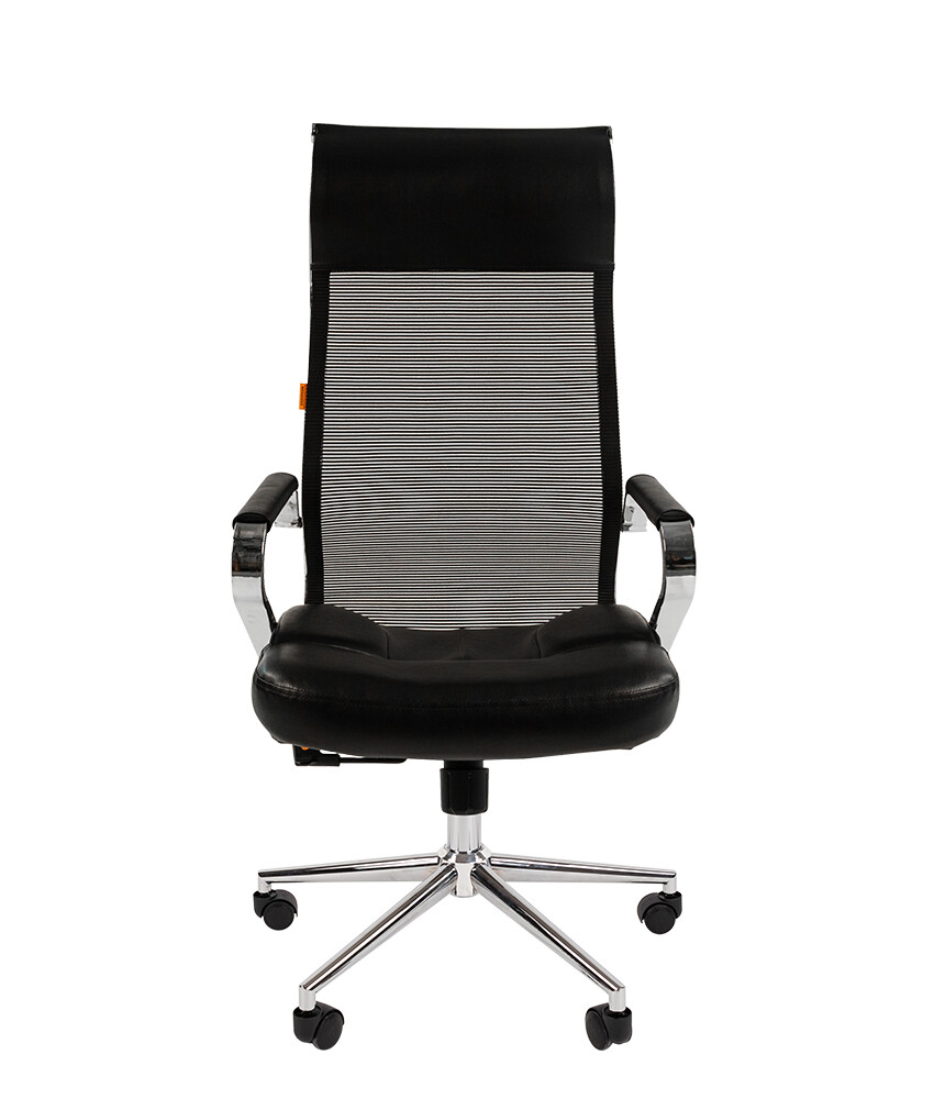 Кресло руководителя с комбинированной обивкой: сетчатый акрил / полиэстер. Металлические хромированные подлокотники с мягкими накладками. Механизм качания с синхронным отклонением сидения и спинки 1:3, с фиксацией кресла в рабочем положении. Регулировка кресла по высоте. Максимальная рекомендованная нагрузка до 120 кг.