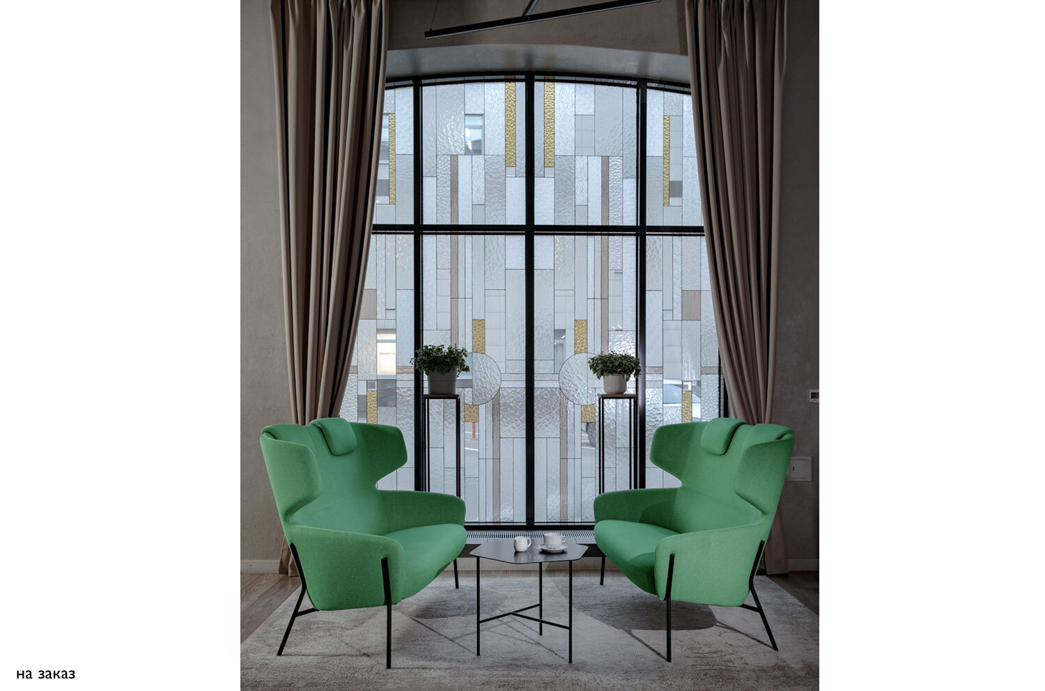 Высокая, широкая спинка кресла защищает сидящего от суеты мира, приглушая звуки и лишний свет, и помогает сосредоточиться на себе.