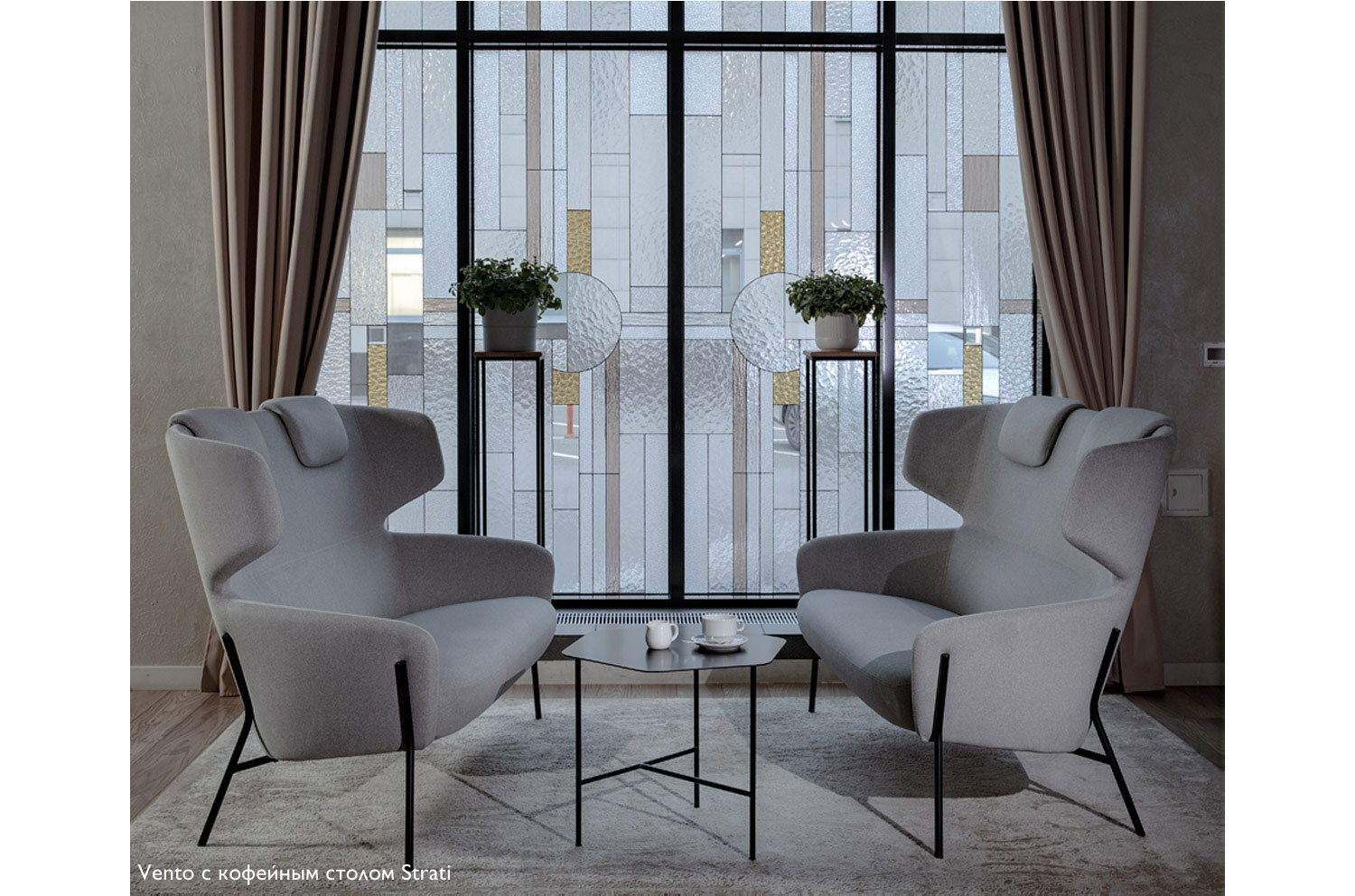 Коллекция Vento – элегантная, логичная и рациональная. Диван и кресло в микровелюре на черных гнутых опорах могут стать выразительным акцентом или идеальным завершающим штрихом в вашем офисе. Vento поддержит, если вы устали, в нем можно расположиться с ноутбуком или присесть для общения с гостями.