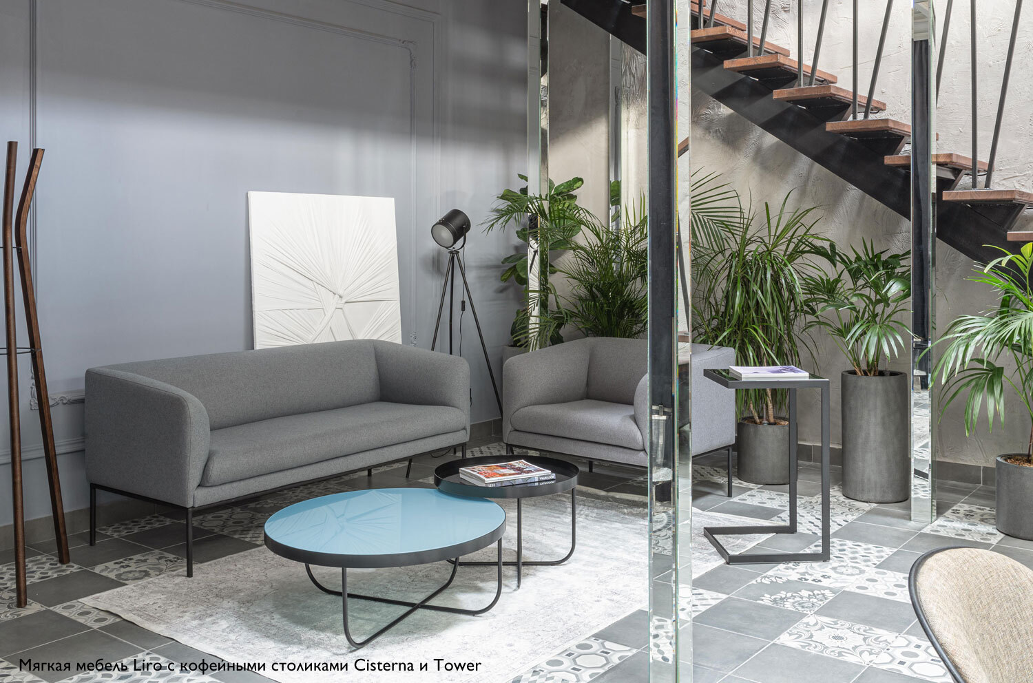Коллекция Liro, несмотря на свои корни, уходящие в модернизм, отличается попыткой объединить метафору с рациональностью геометрической формы. Сиденье и подушки, утратившие характерную для офисных диванов жесткость, становятся более гостеприимными, линии смягчаются, воплощаясь в легкость с максимальным уважением к балансу и пропорциям.