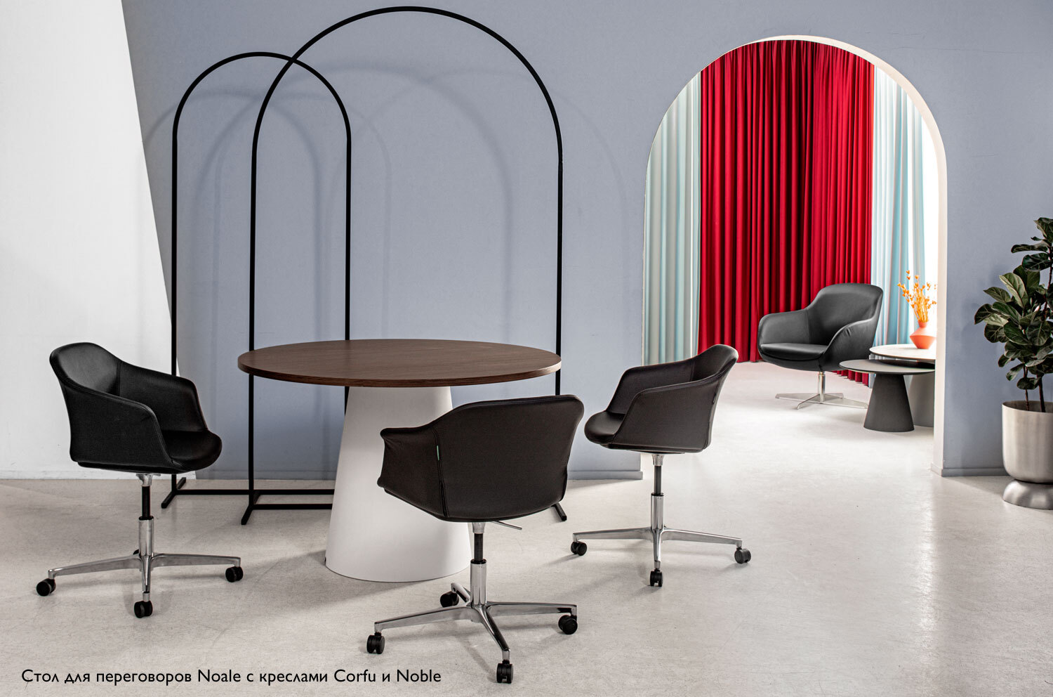Достаточно большая высота спинки (почти 1,4 м) обеспечивает визуальную неприкосновенность частной жизни и подавляет окружающий шум, позволяя спокойно сосредоточиться на деловой беседе или уединенной работе.