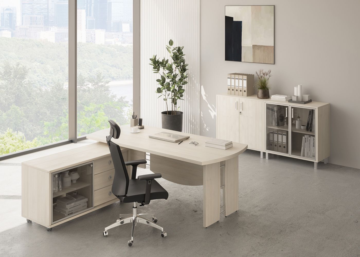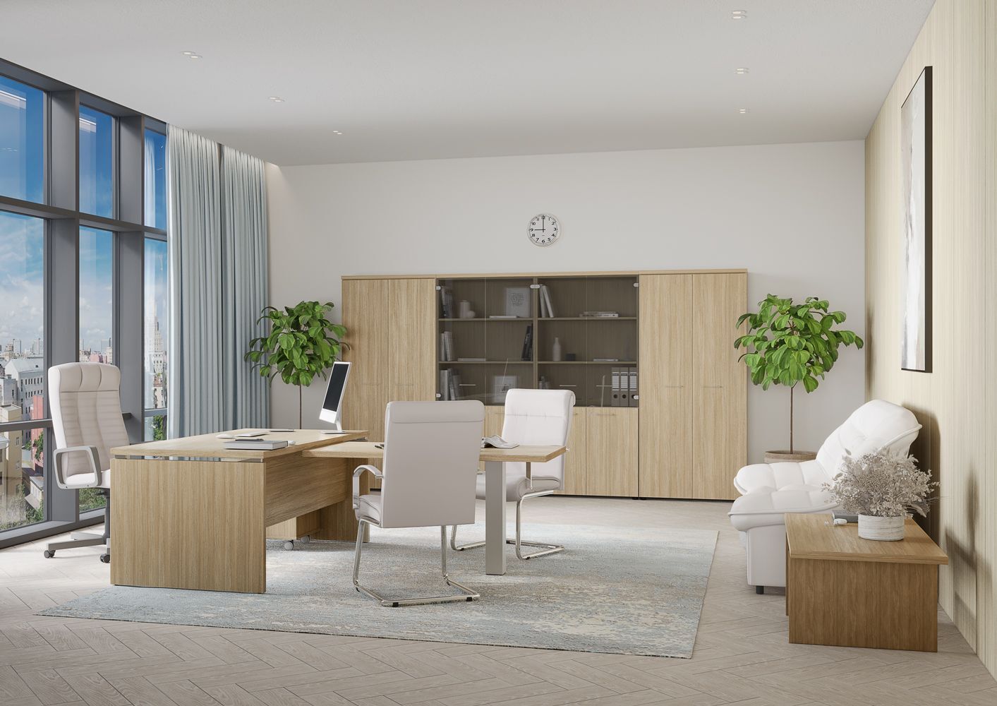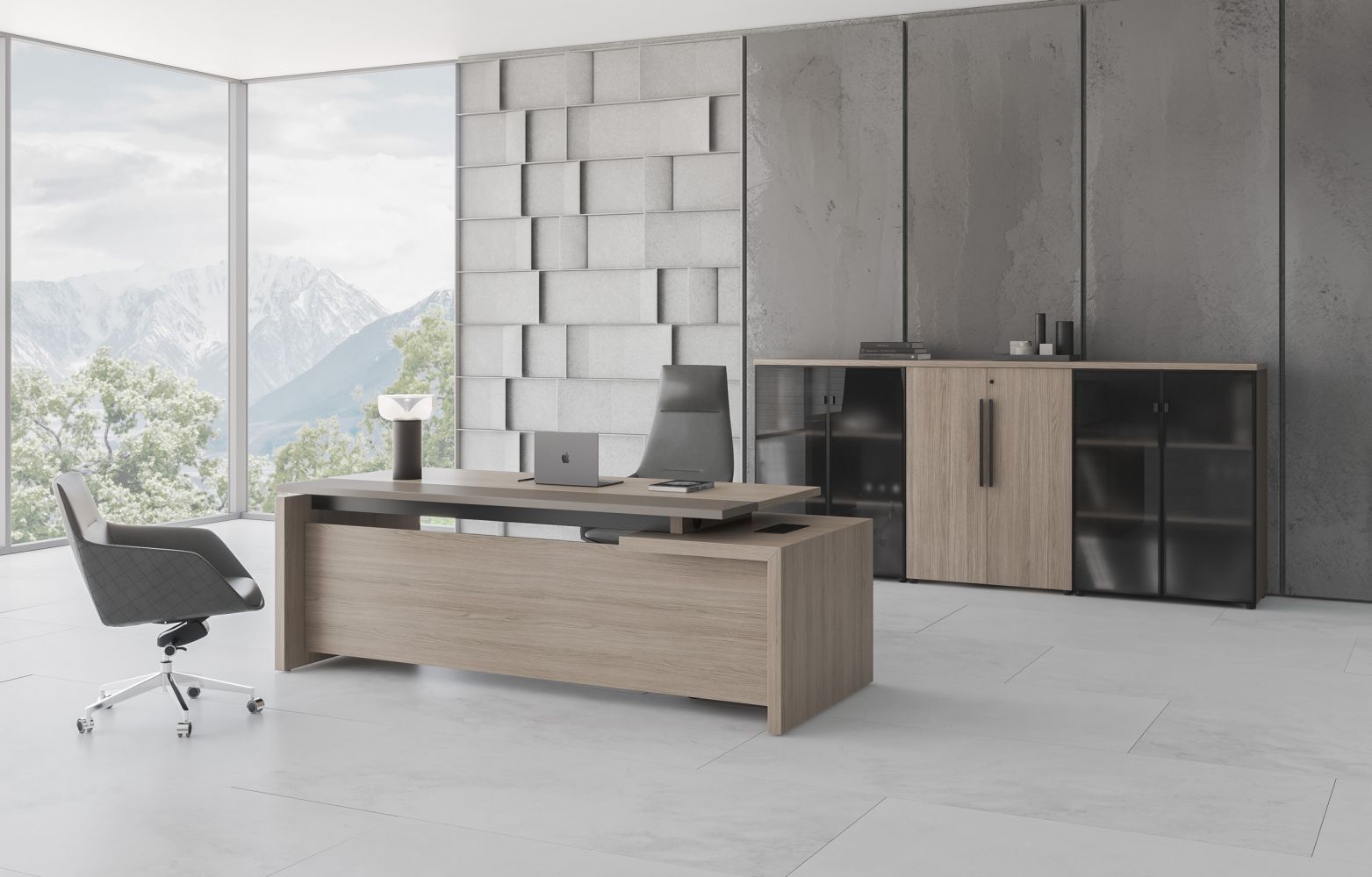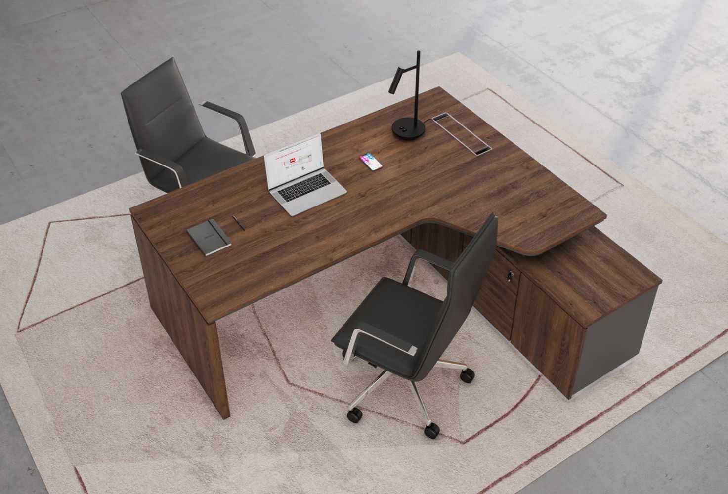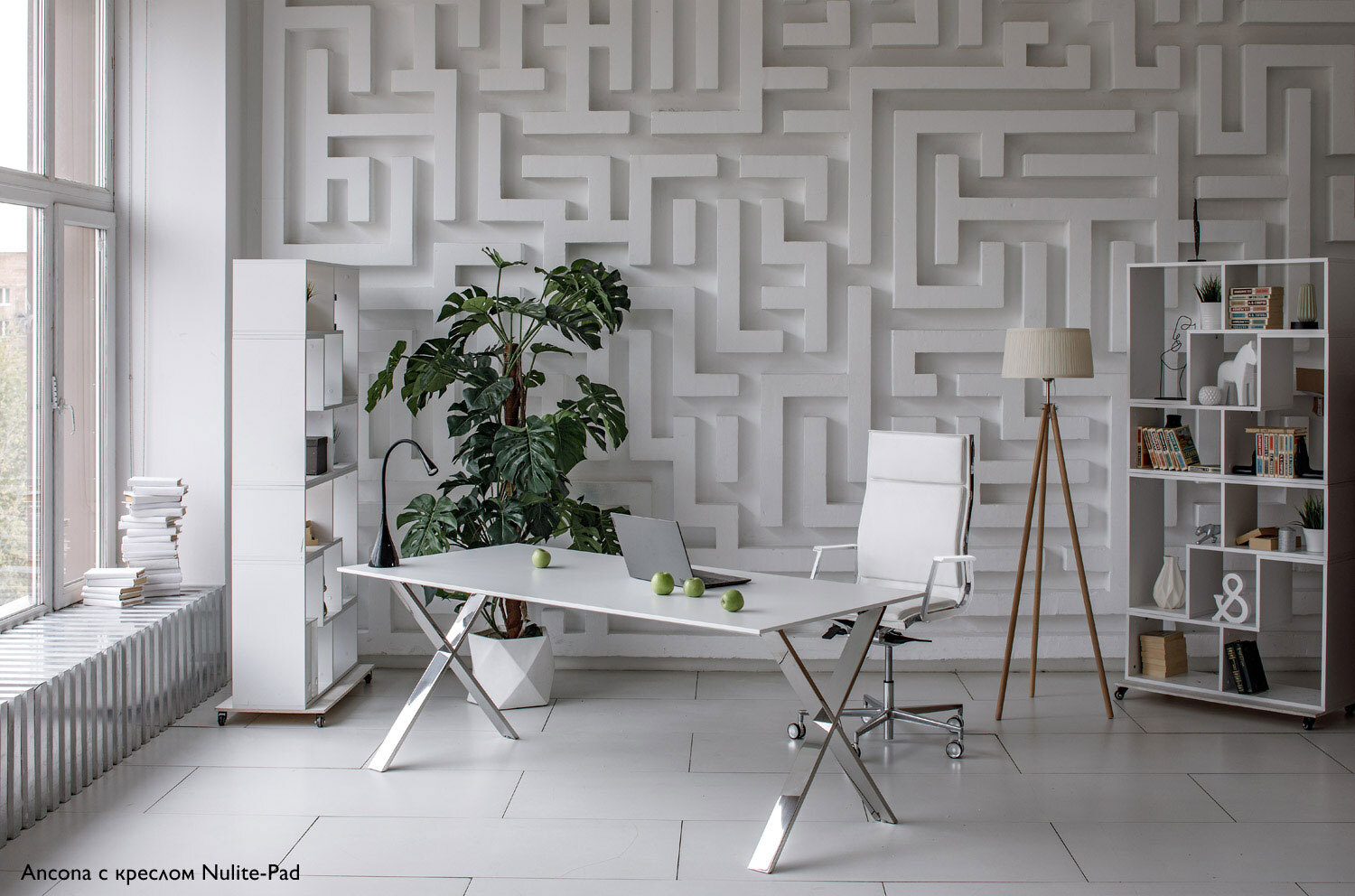 Конструкция элементов доведена до скульптурной четкости. Дизайн функционально обоснован и лаконичен. Прямые линии, массивные формы и интересные детали привнесут эстетику и значительность в интерьер вашего офиса.