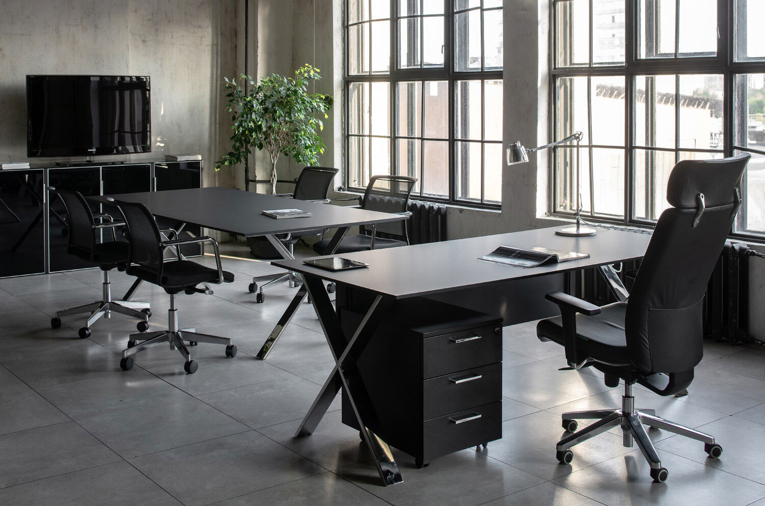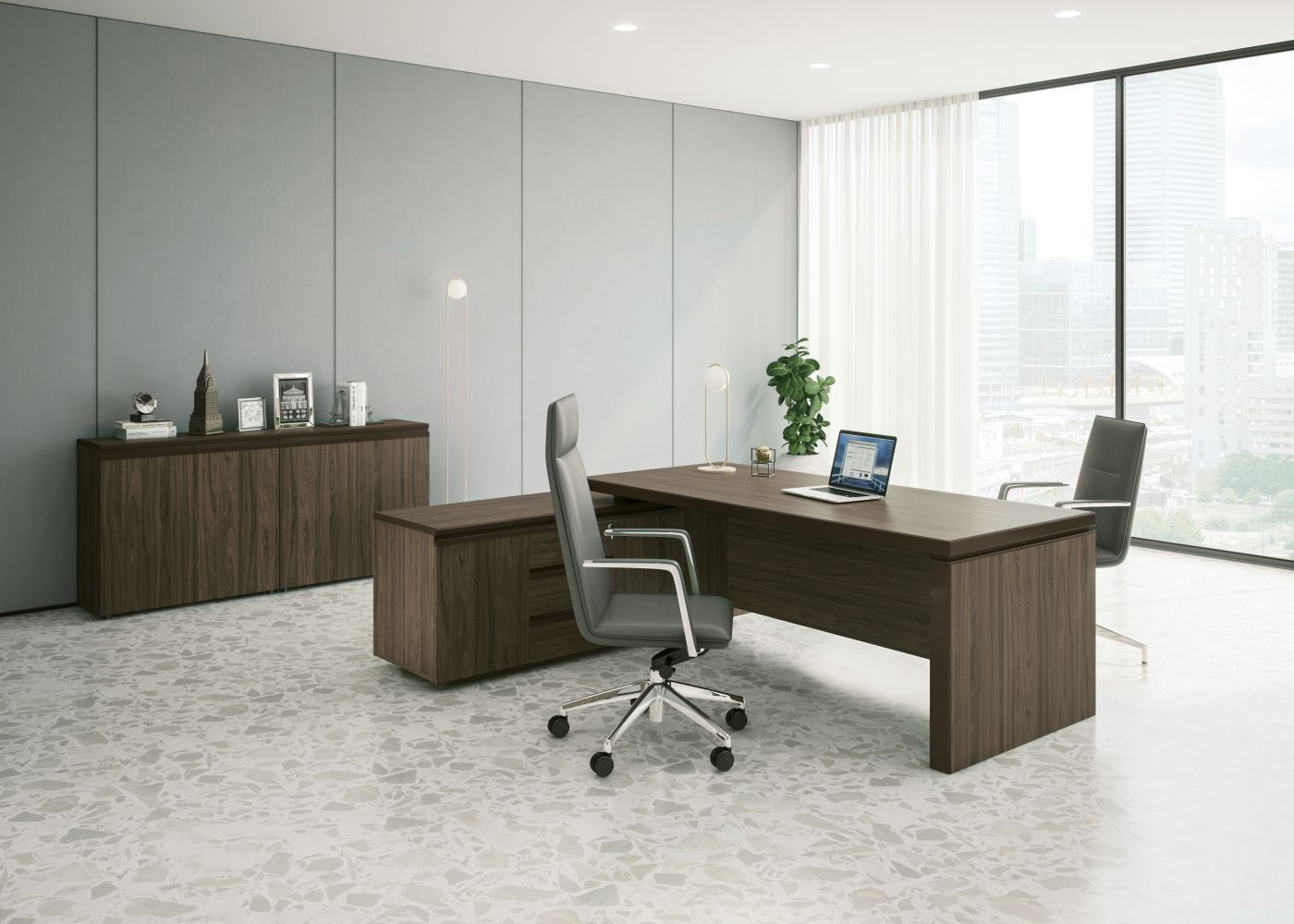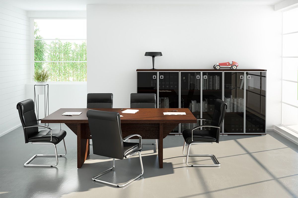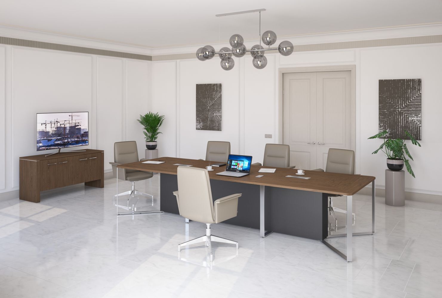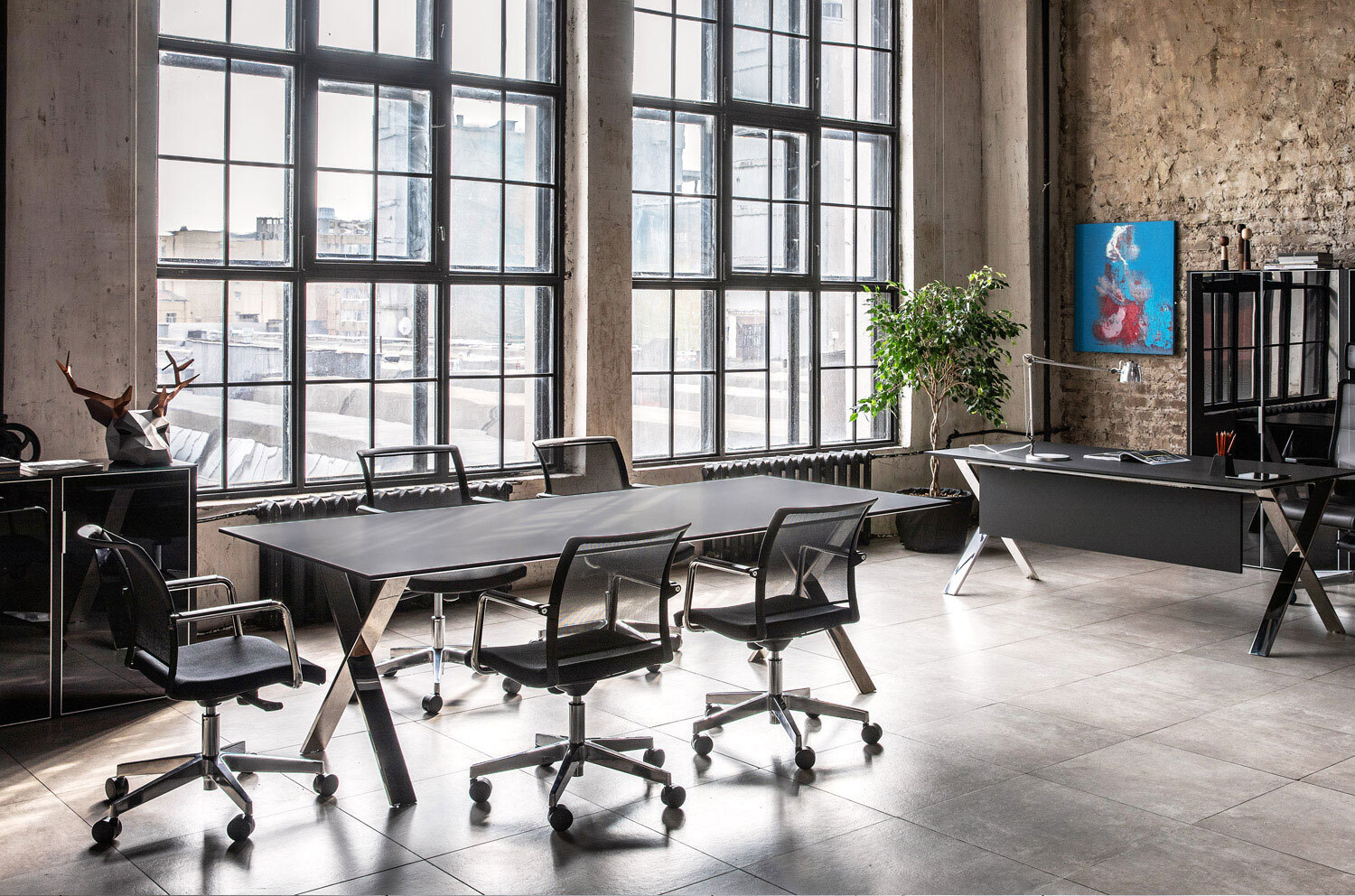 Конструкция элементов доведена до скульптурной четкости. Дизайн функционально обоснован и лаконичен. Прямые линии, массивные формы и интересные детали привнесут эстетику и значительность в интерьер вашего офиса.