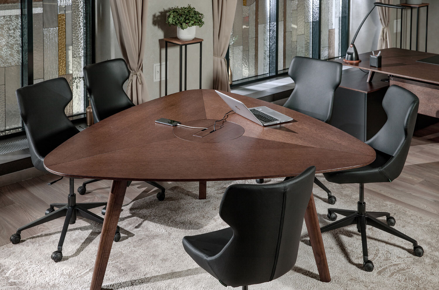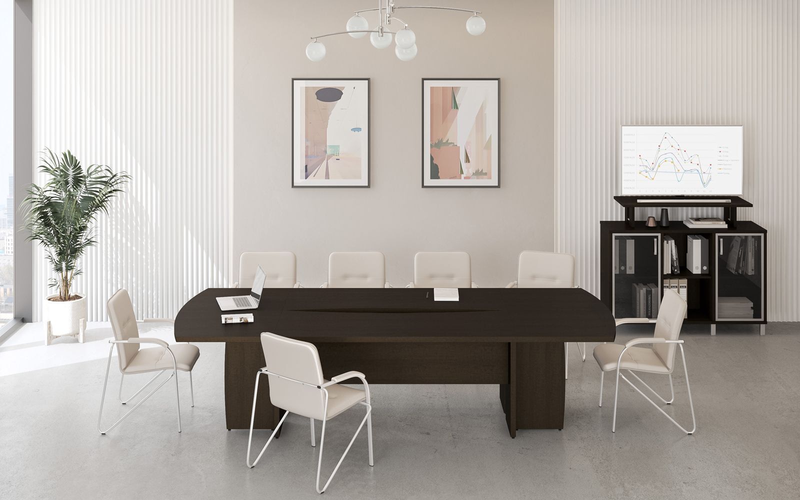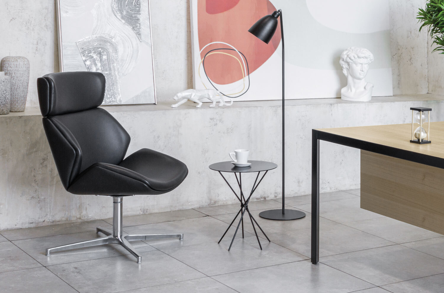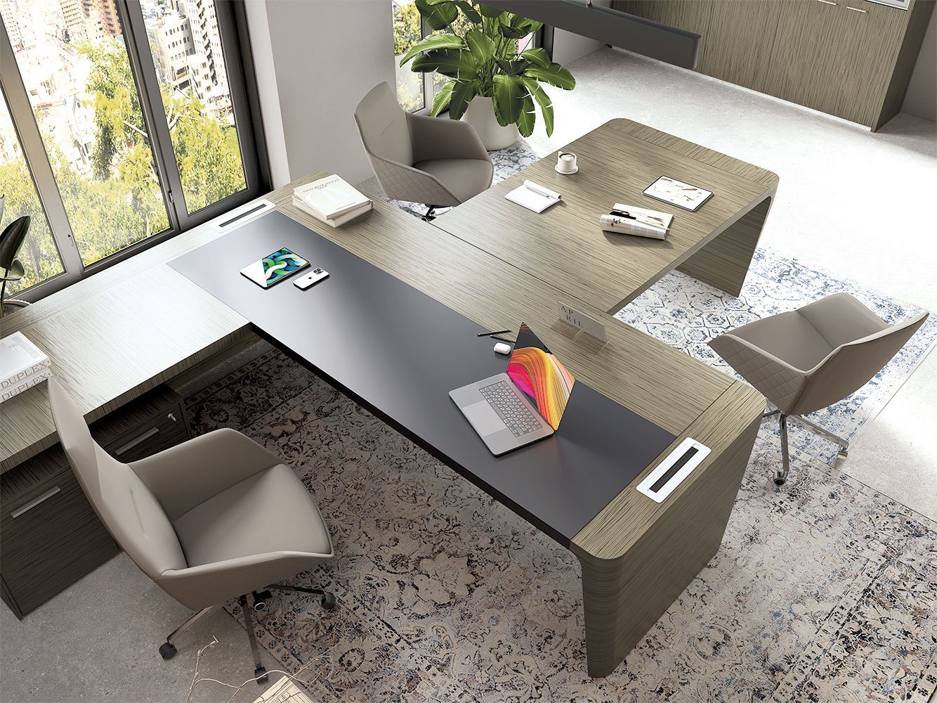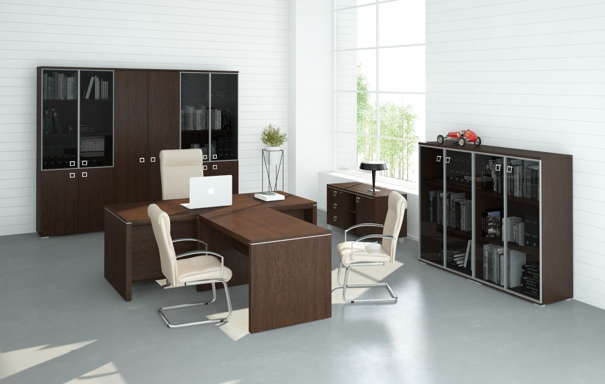 Конструкция элементов доведена до скульптурной четкости. Дизайн функционально обоснован и лаконичен. Прямые линии, массивные формы и интересные детали привнесут эстетику и значительность в интерьер вашего офиса.