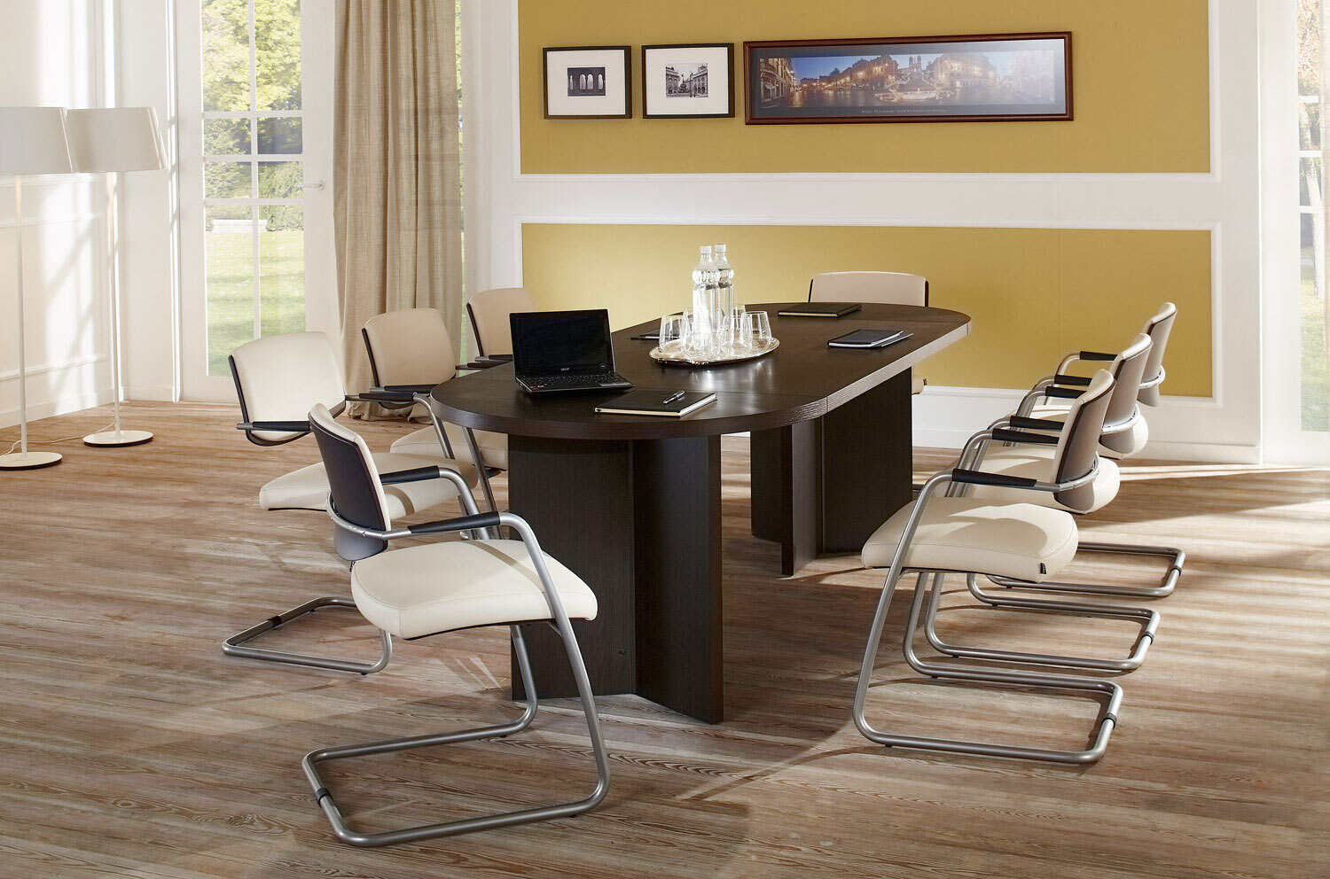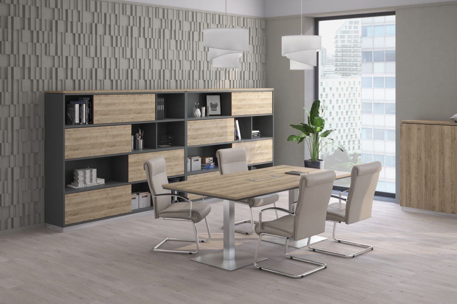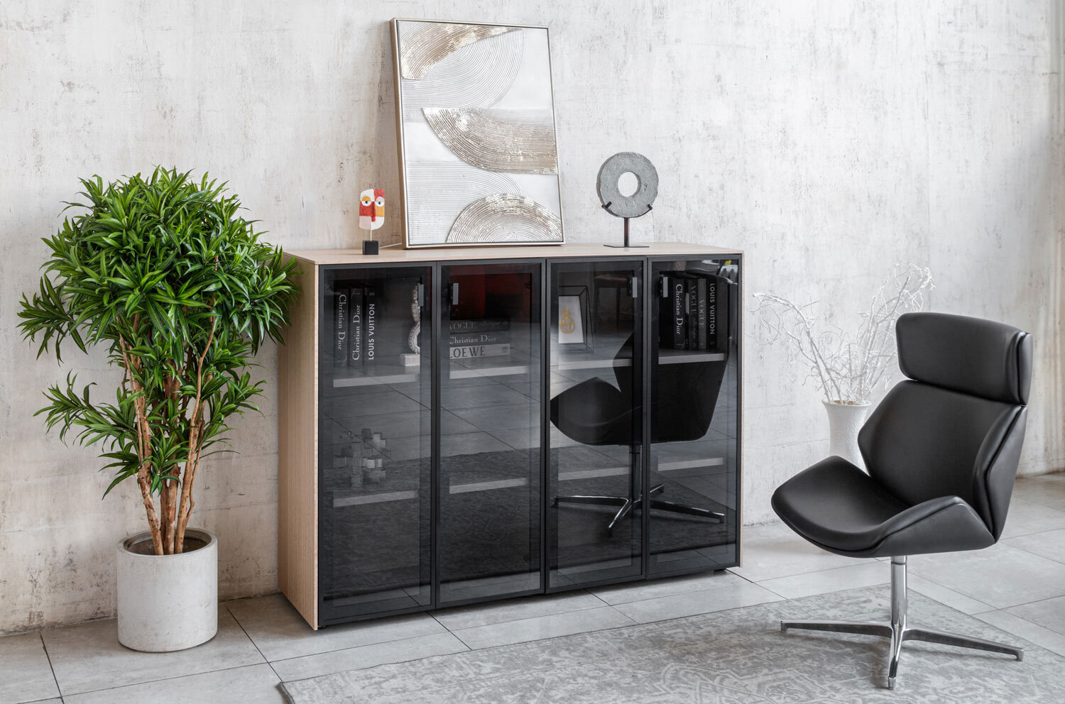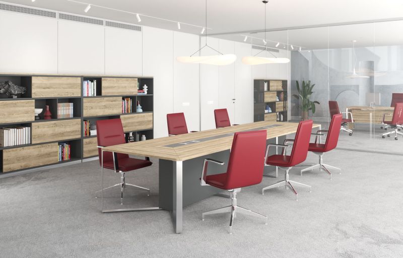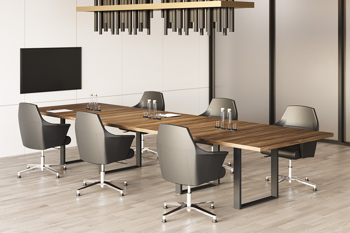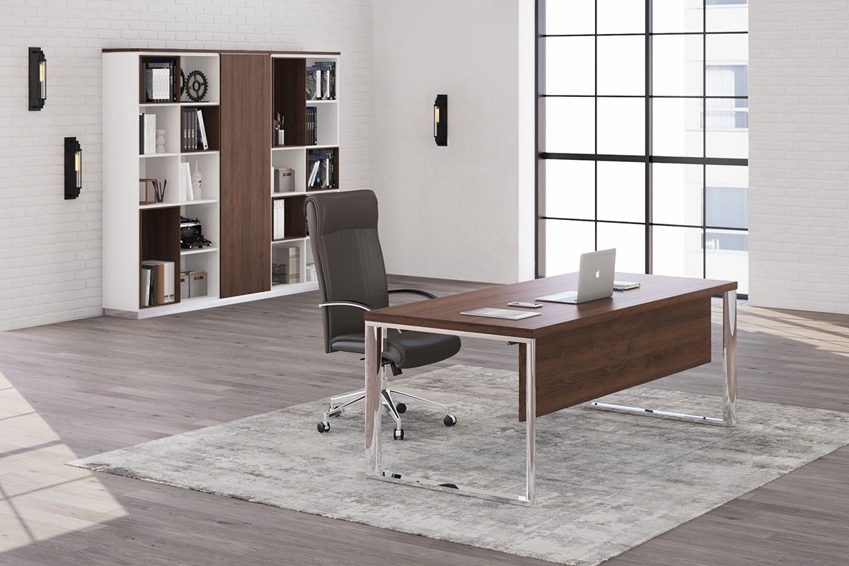 Конструкция элементов доведена до скульптурной четкости. Дизайн функционально обоснован и лаконичен. Прямые линии, массивные формы и интересные детали привнесут эстетику и значительность в интерьер вашего офиса.