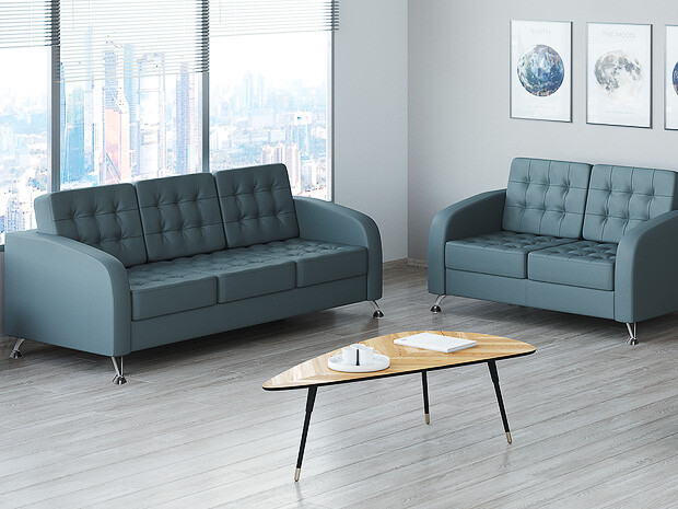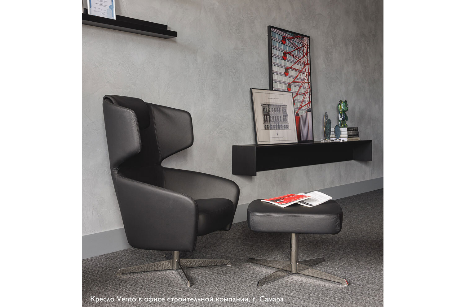 Коллекция Vento – элегантная, логичная и рациональная. Диван и кресло в микровелюре на черных гнутых опорах могут стать выразительным акцентом или идеальным завершающим штрихом в вашем офисе. Vento поддержит, если вы устали, в нем можно расположиться с ноутбуком или присесть для общения с гостями.