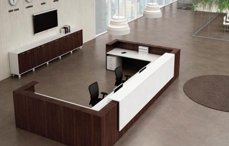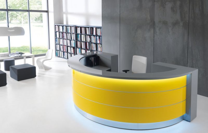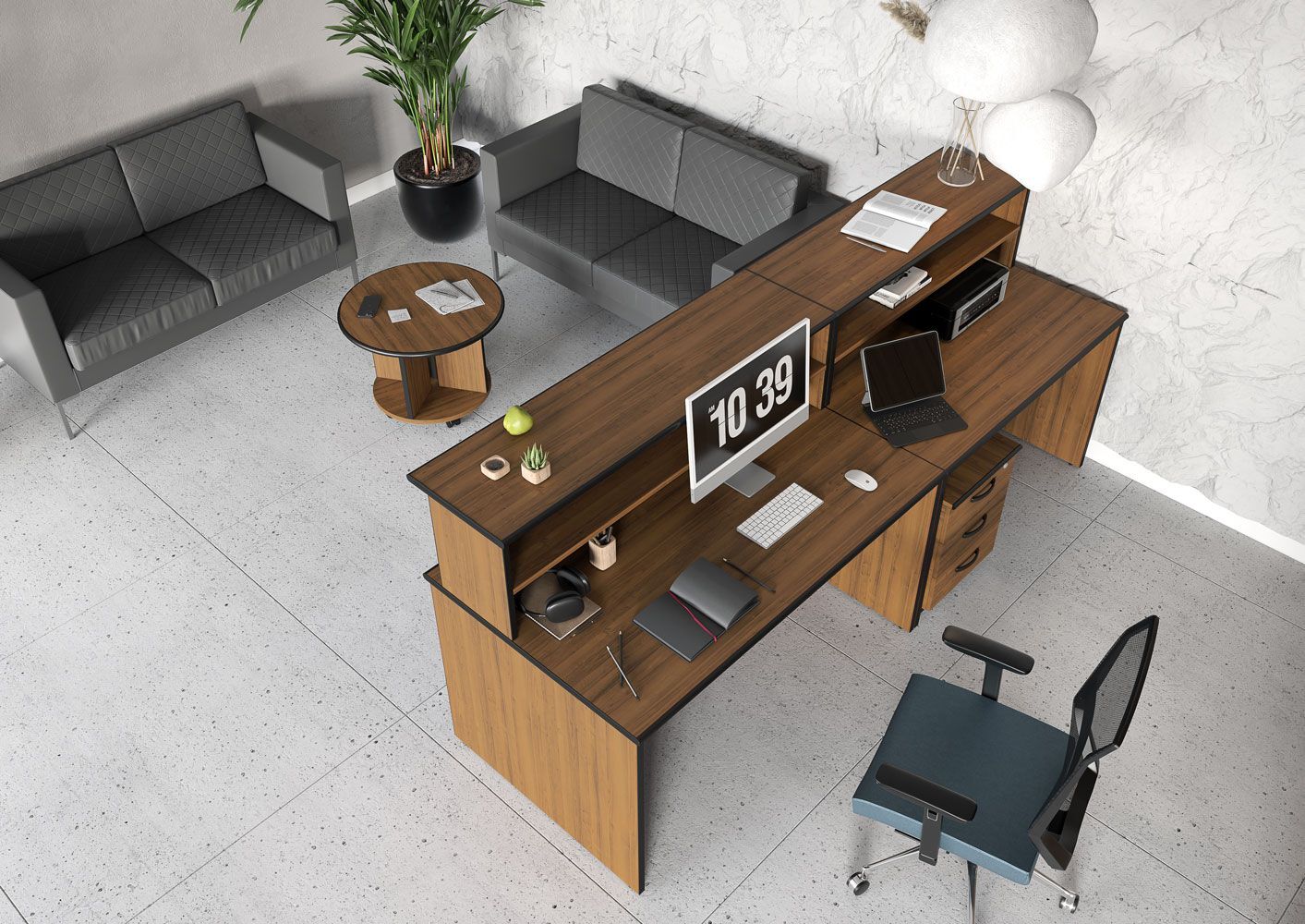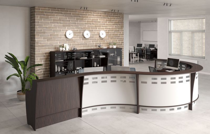 Стойка ресепшен — это центральный элемент зоны ресепшен. Благодаря наличию в радиальных секциях металлических экранов цвета «матовый алюминий» стойки ресепшен Формула идеально впишутся в современный офис, оформленный в стиле hi-tech. При разработке стойки ресепшен Формула специалисты учитывали не только модные тенденции в дизайне, но и эргономичность офисной мебели и безопасность работы офисного сотрудника.