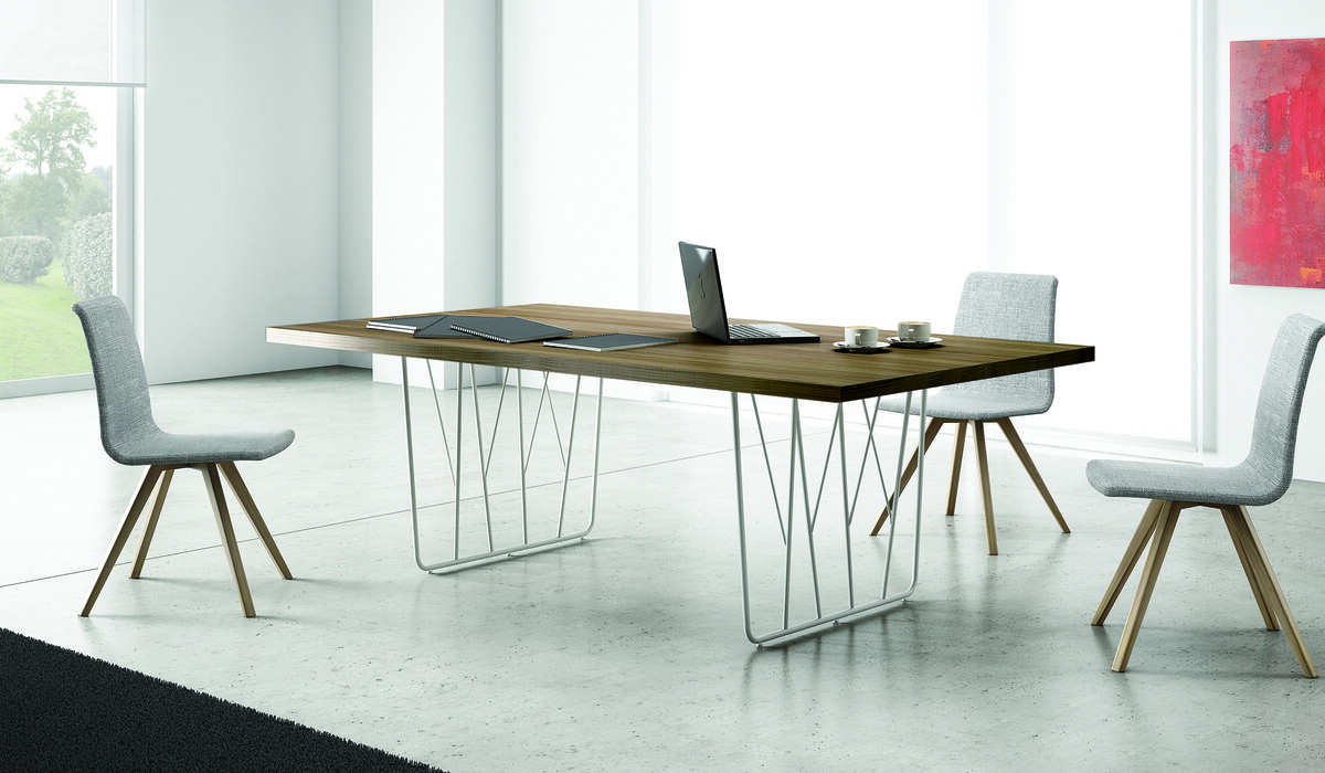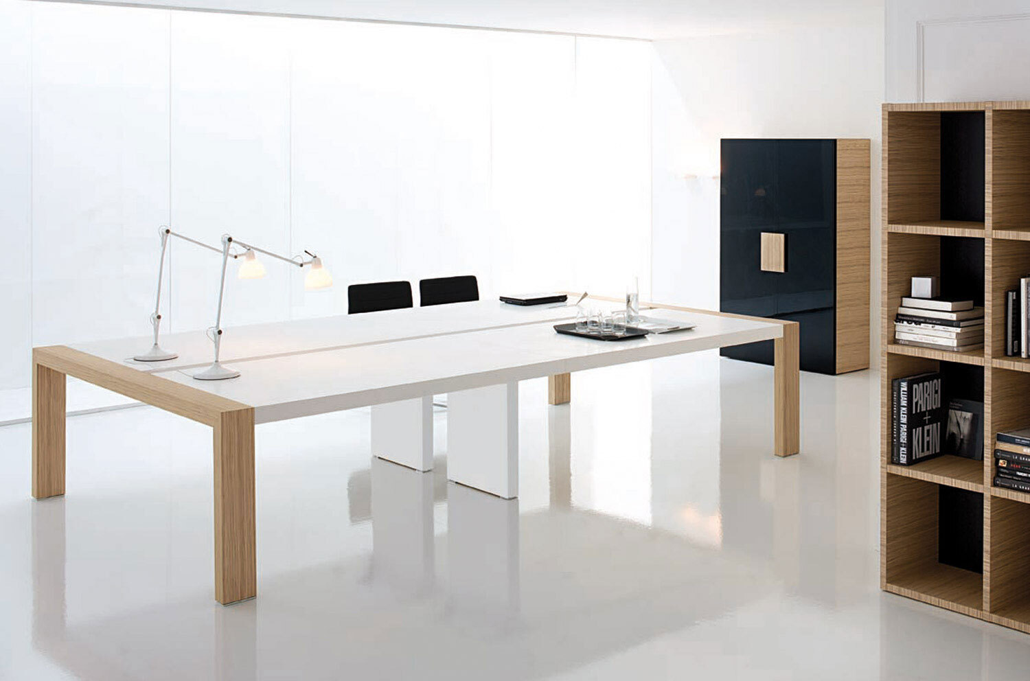 Kyo — это коллекция итальянской мебели для кабинетов и переговорных с дизайном от Марио Маццера (Mario Mazzer), в которой простые линейные формы преображаются за счет инновационных материалов и внушительной толщины элементов.