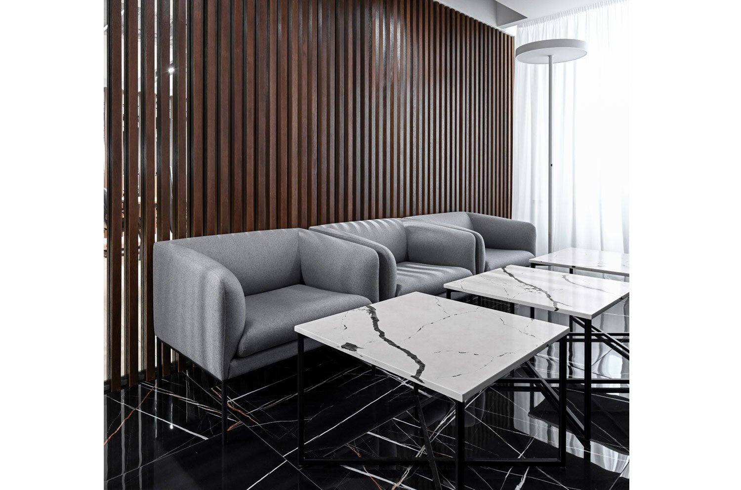 Декоративная строчка в сочетании с объемными формами Volta наполнит вашу зону ожидания аурой гостеприимства и доброжелательности.